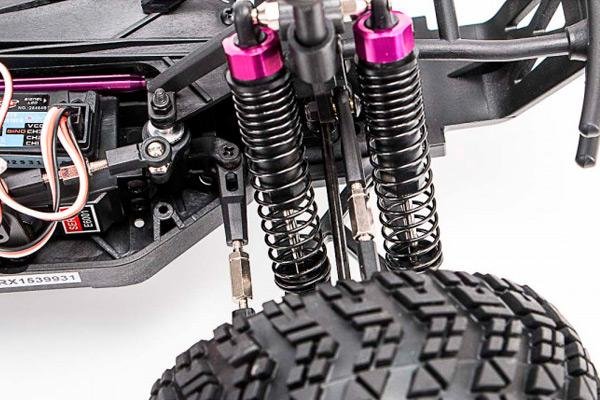 Двойные маслянные амортизаторы на каждом колесе. До 45км/ч, полный привод, масштаб 1:10