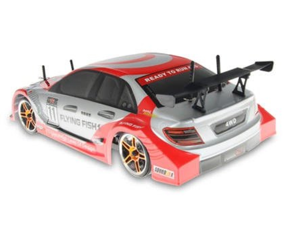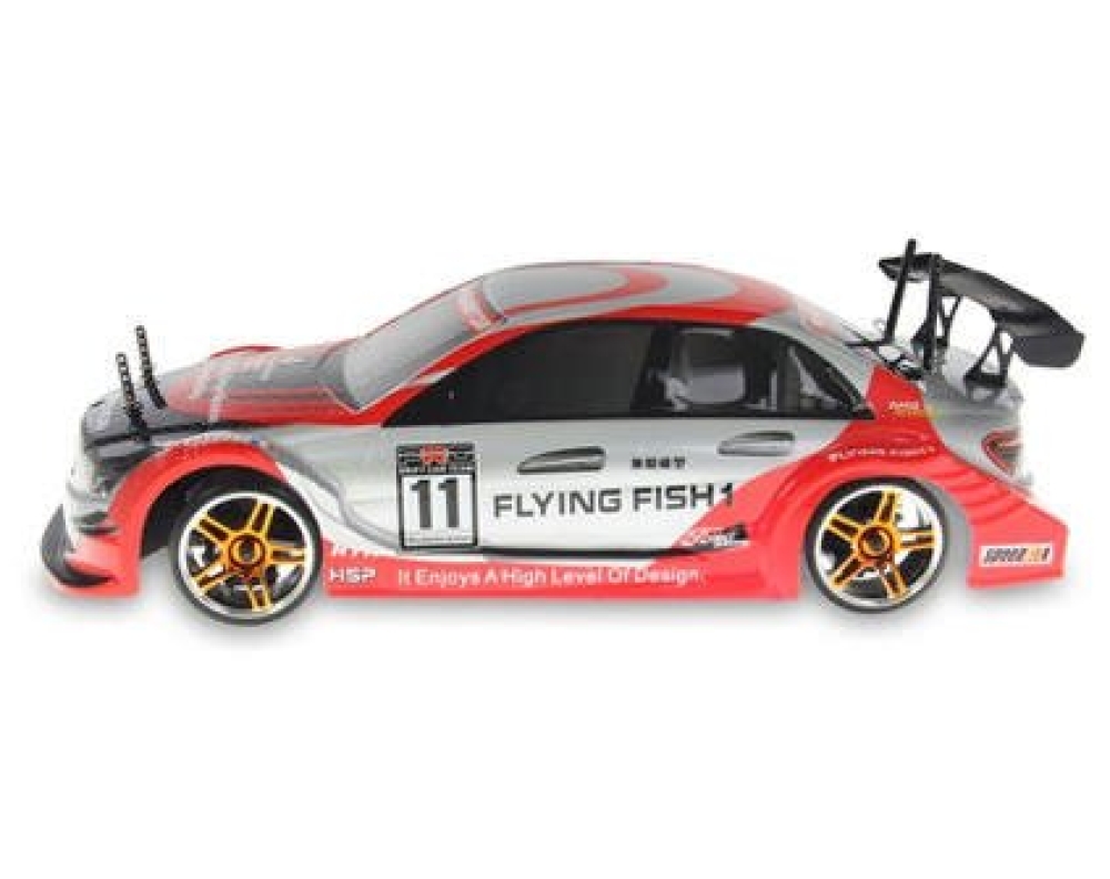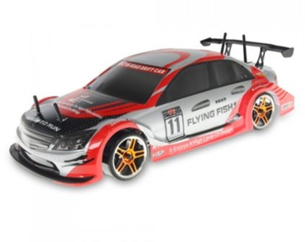 HSP Flying Fish 1 - радиоуправляемая автомодель с электродвигателем серии 540, на базе шасси с полным приводом, выполненная в масштабе 1:10 и готовая к эксплуатации, надежная и качественно собранная. Шасси из прочного специального пластика, влагозащита электроники, привод на все колеса, оригинальный состав резины колес, закрытый редуктор, регулируемые амортизаторы, эту модель просто настраивать и обслуживать, машина хорошо поддается модернизации. Модель хорошо подходит как для начинающих, так и для опытных гонщиков. Отличная аэродинамика кузова в сочетании с уникальными возможностями шасси заставляют почувствовать себя героем фильма «Токийский дрифт».