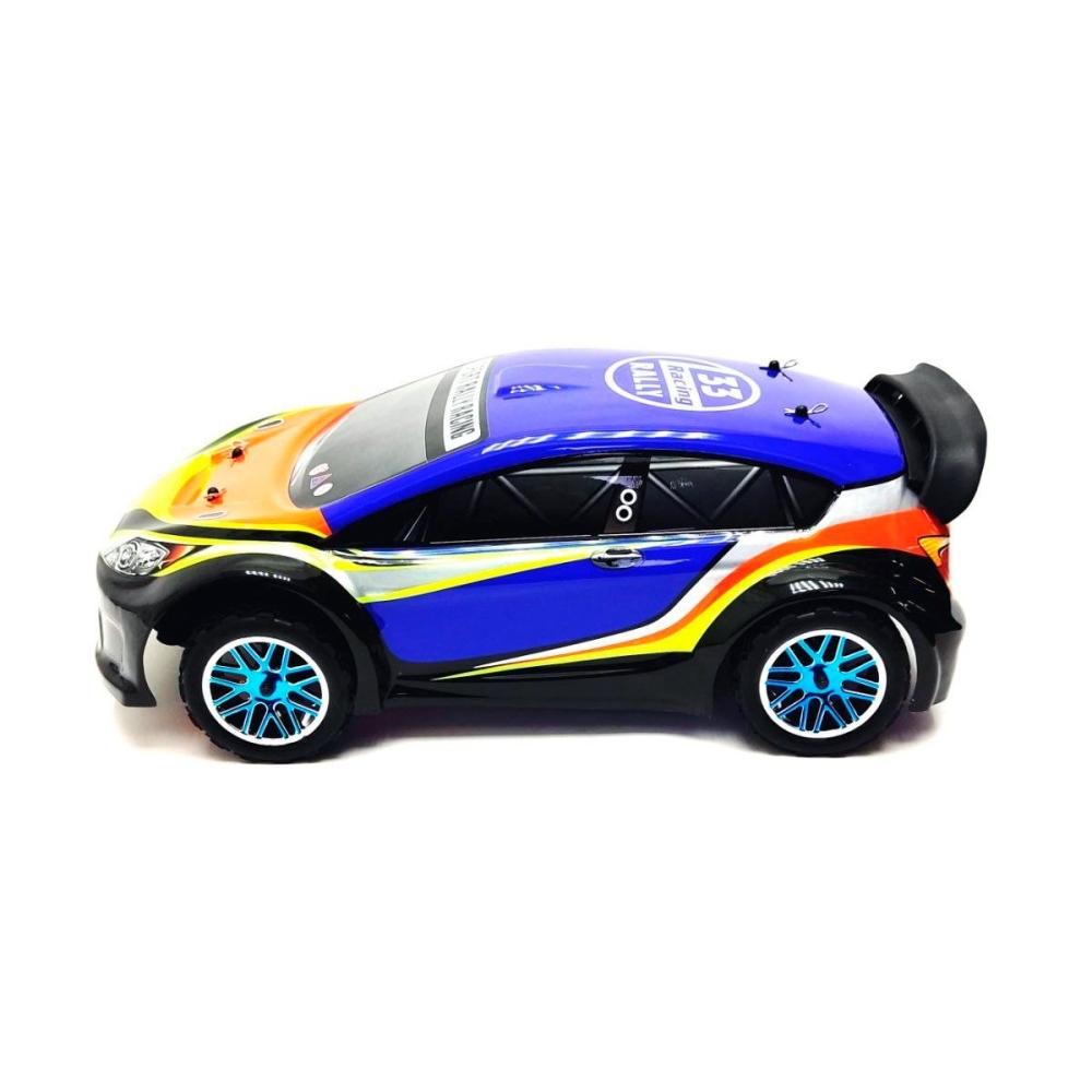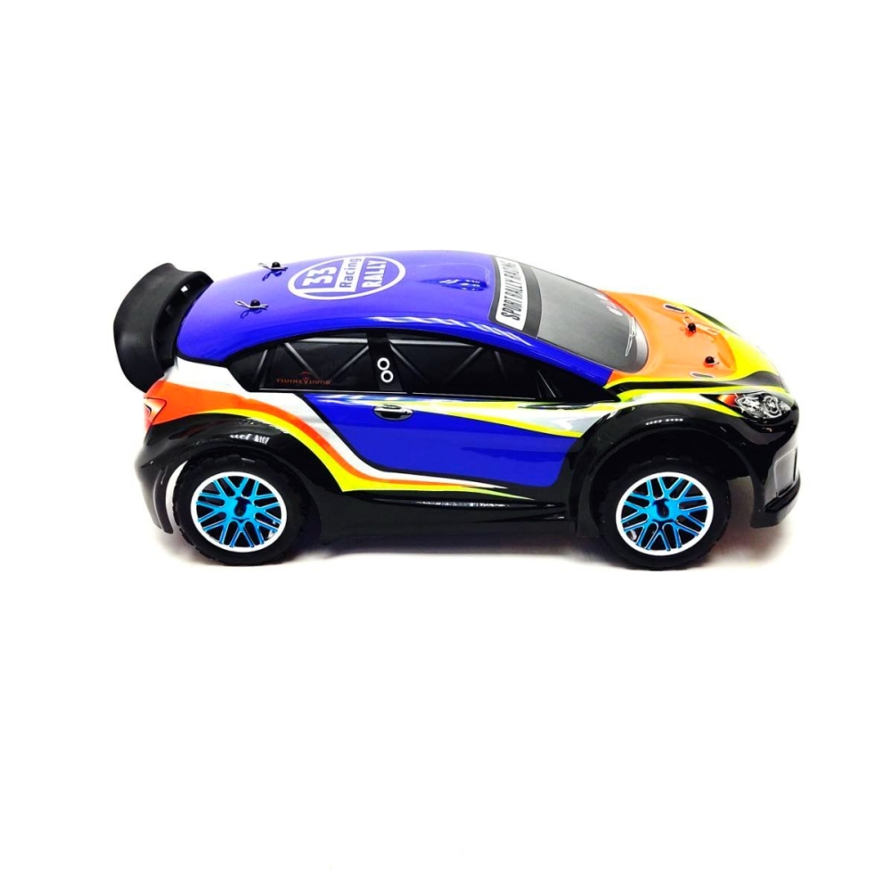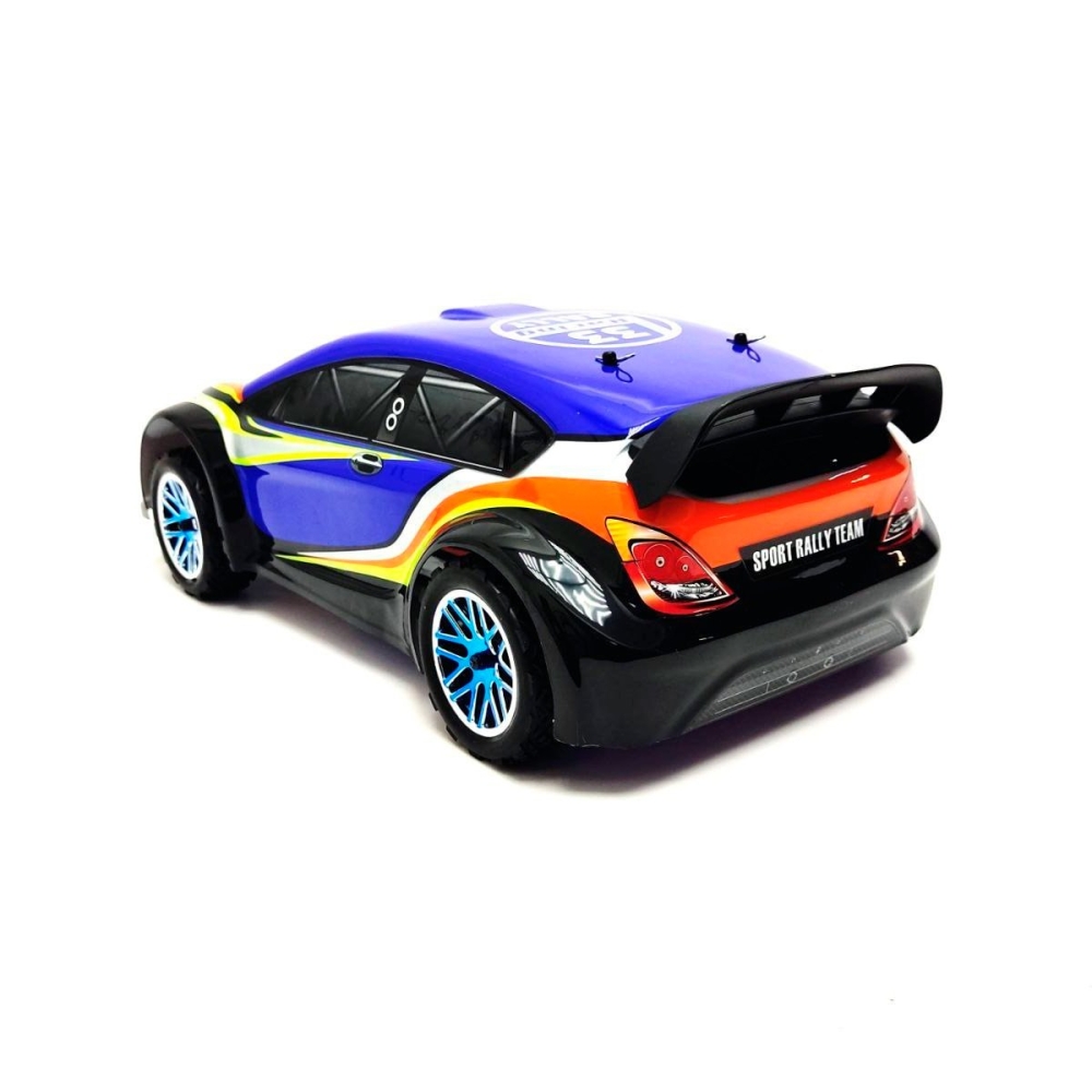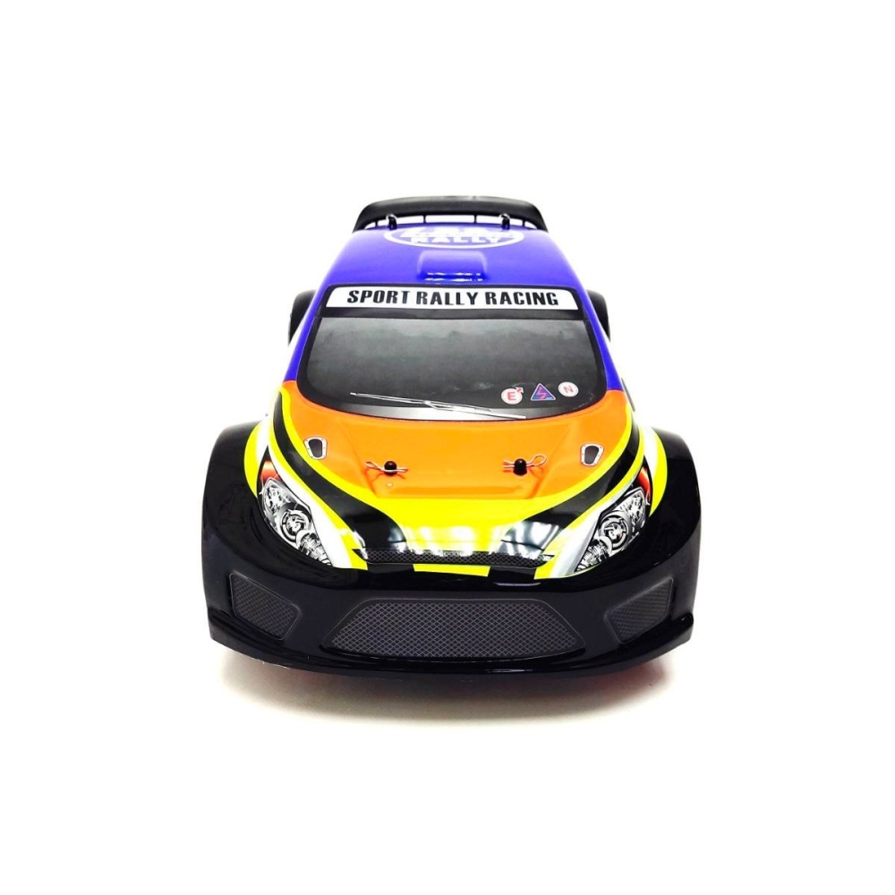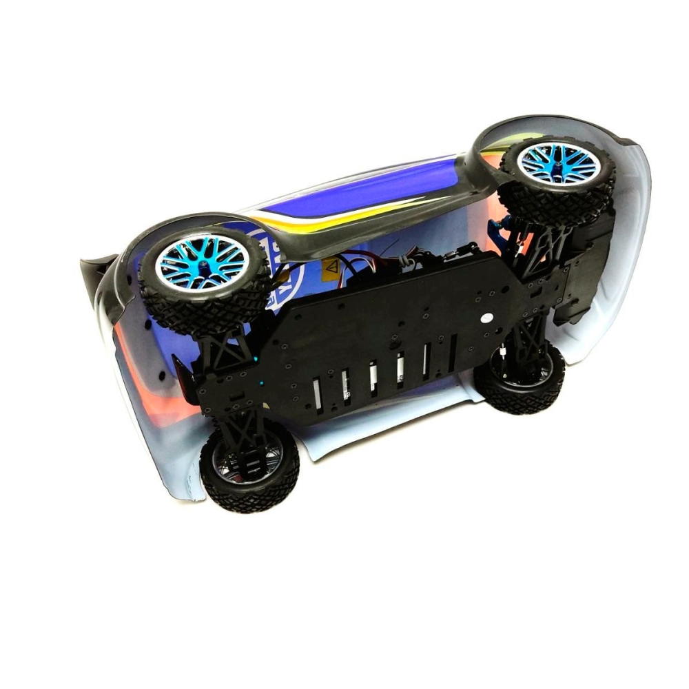 Большой автомобиль раллийного типа с бесколлекторной системой и постоянным полным приводом. Предназначен для заездов на улице по пересеченной местности - гравию, плотному грунту, асфальту и т.п.. Резиновые колеса и полный привод 4x4 обеспечат отличную проходимость и сцепление с дорожным полотном. Модель настроена к заездам на заводе, поэтому даже новичок сразу справится с управлением и эксплуатацией машинки. Версия PRO означает более высокую скорость и разгон по сравнению с коллекторной машиной, за счет совершенно другого мотора и регулятора оборотов. Часть важных деталей выполнены из стали и алюминия - амортизаторы и их крепления, продольная усиливающая пластина, карданный вал, тяги подвески и дифференциалы.