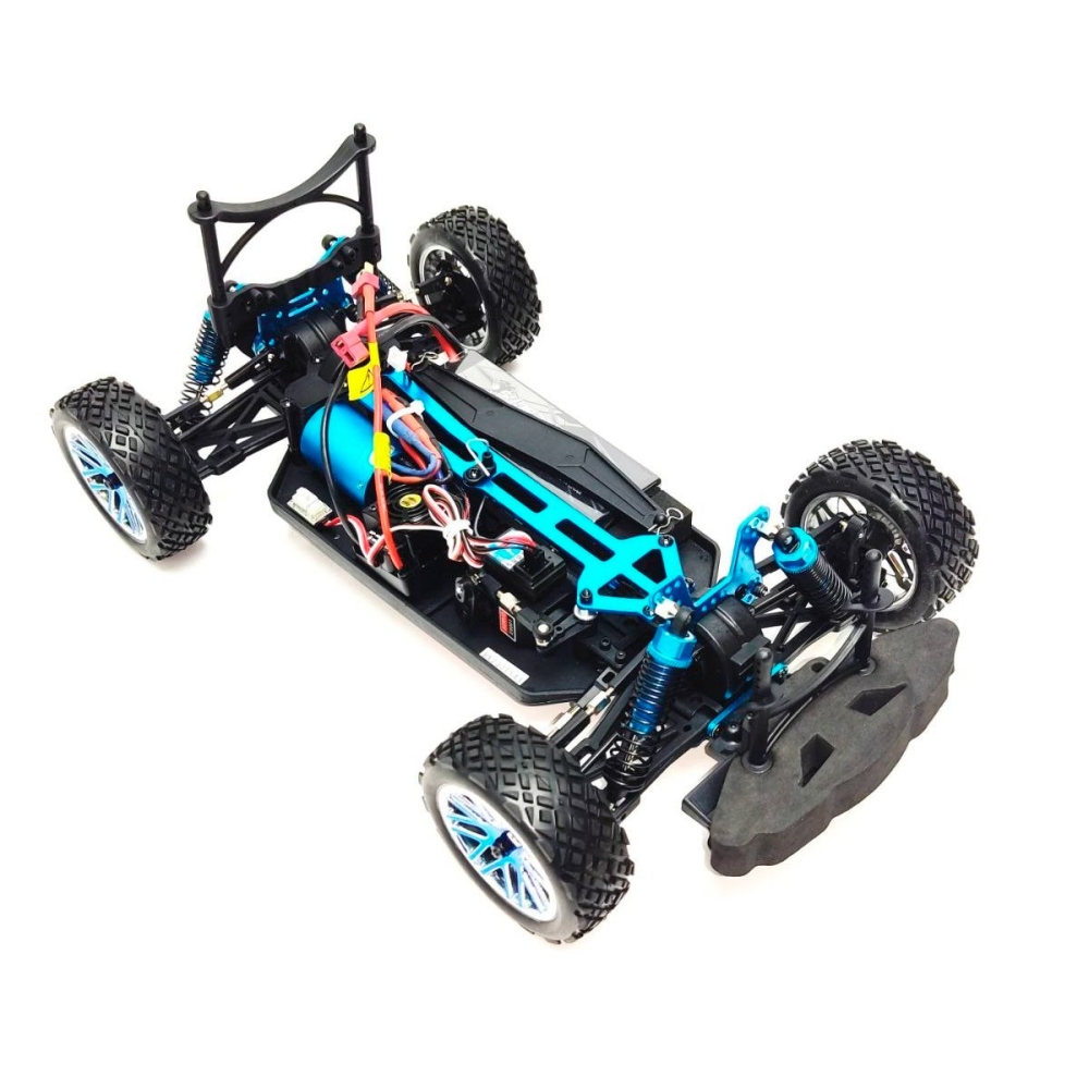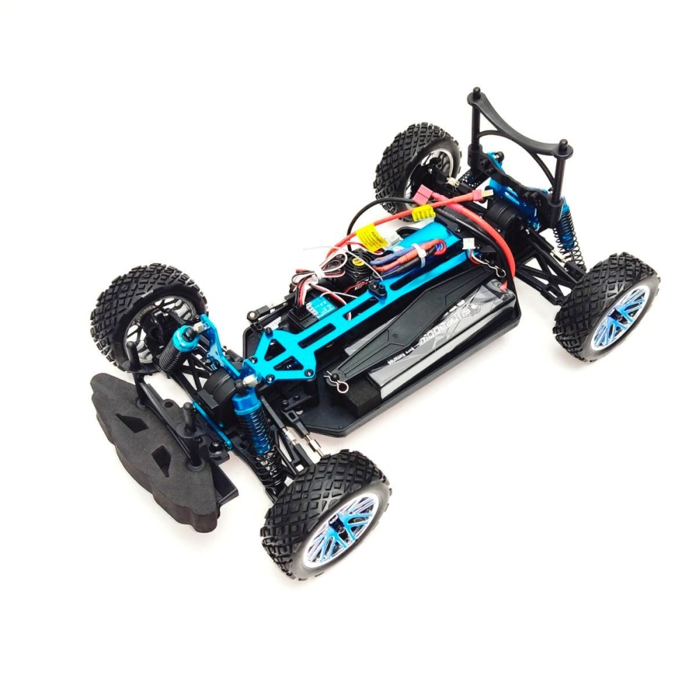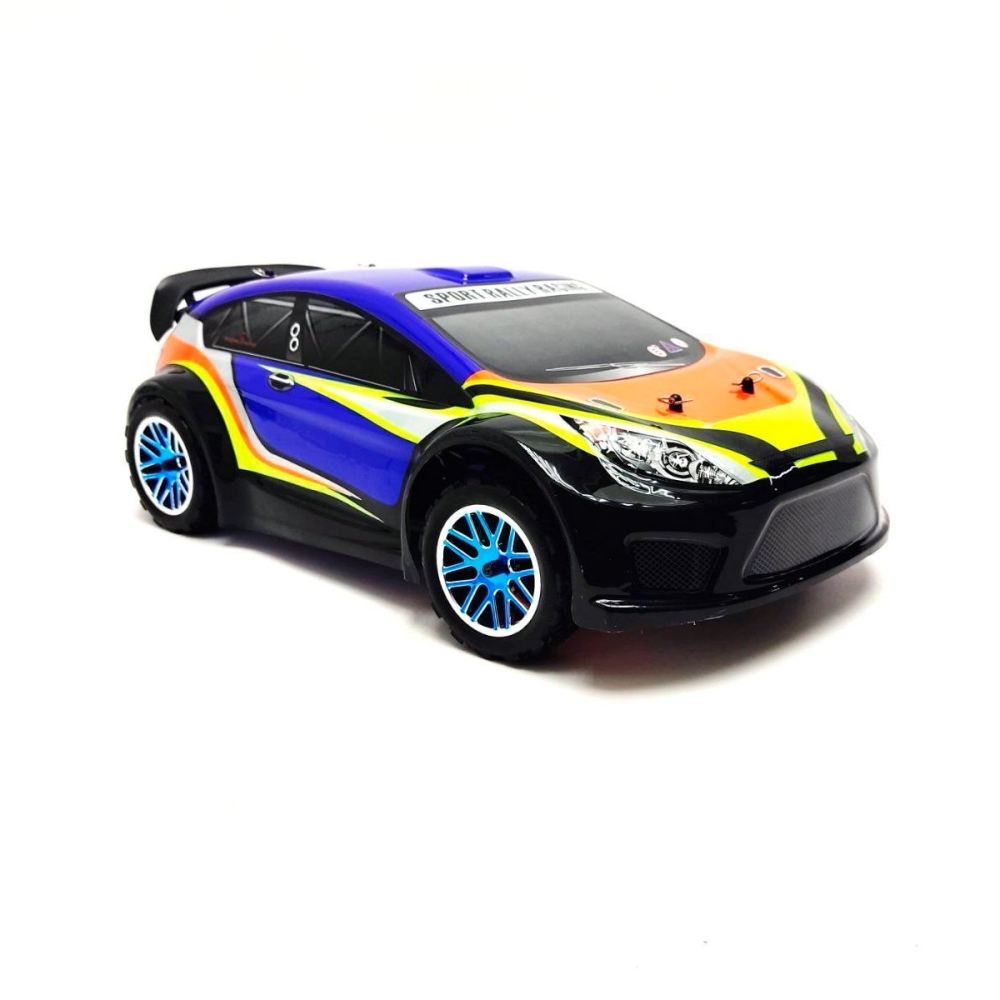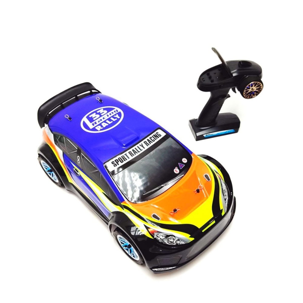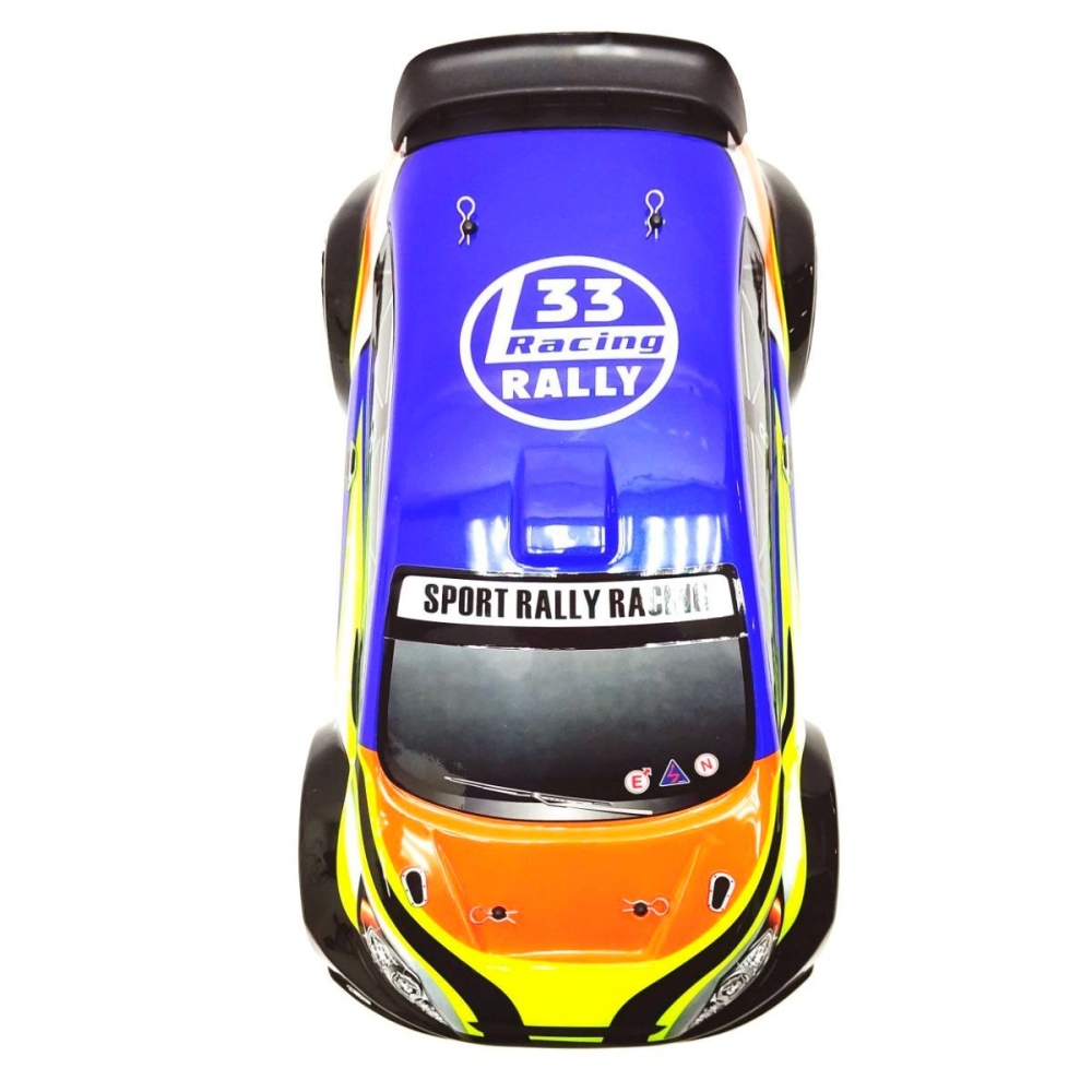Большой автомобиль раллийного типа с бесколлекторной системой и постоянным полным приводом. Предназначен для заездов на улице по пересеченной местности - гравию, плотному грунту, асфальту и т.п.. Резиновые колеса и полный привод 4x4 обеспечат отличную проходимость и сцепление с дорожным полотном. Модель настроена к заездам на заводе, поэтому даже новичок сразу справится с управлением и эксплуатацией машинки. Версия PRO означает более высокую скорость и разгон по сравнению с коллекторной машиной, за счет совершенно другого мотора и регулятора оборотов. Часть важных деталей выполнены из стали и алюминия - амортизаторы и их крепления, продольная усиливающая пластина, карданный вал, тяги подвески и дифференциалы.