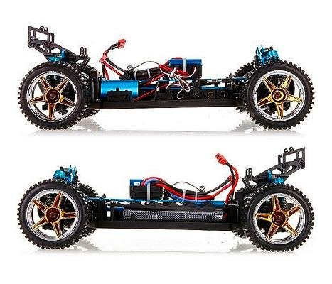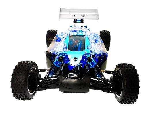 Полноприводный багги от HSP с бесколлекторным мотором. Дополнительно оснащен пластиковым спойлером. Масштаб модели - 1:10. Цвет корпуса - сине-бирюзовый, с чёрно-белыми декалями.