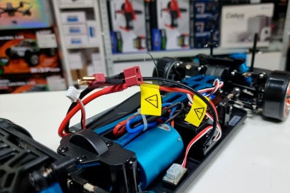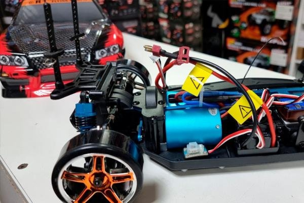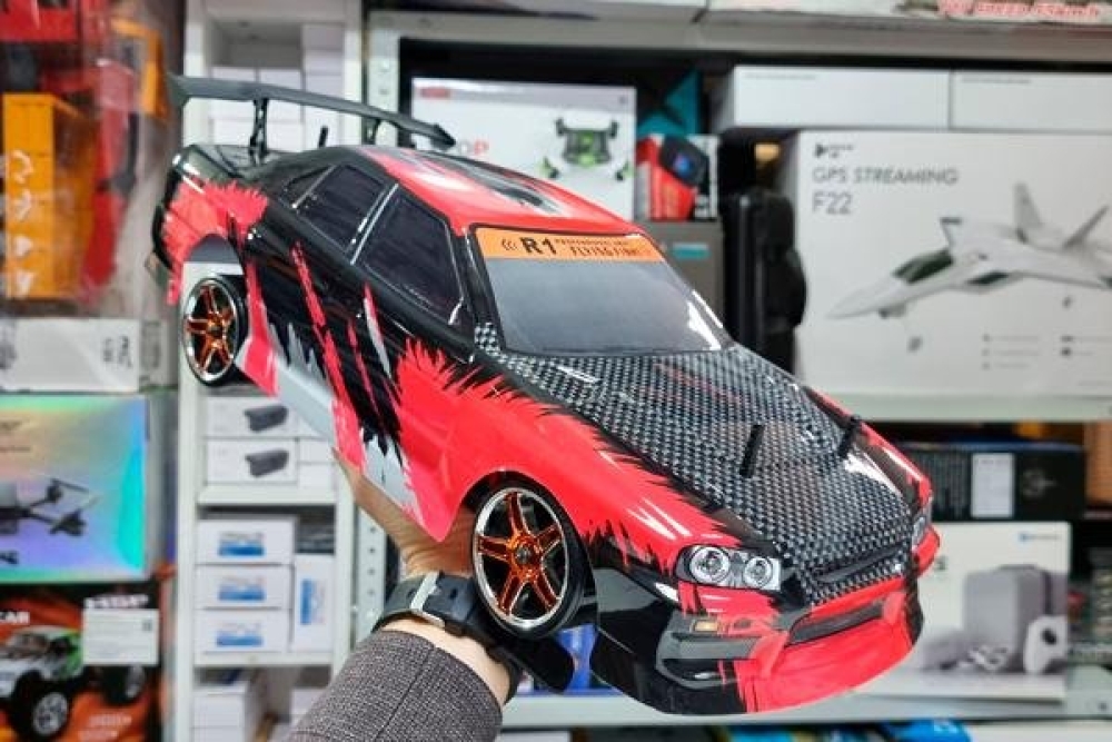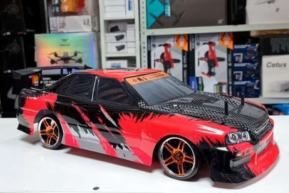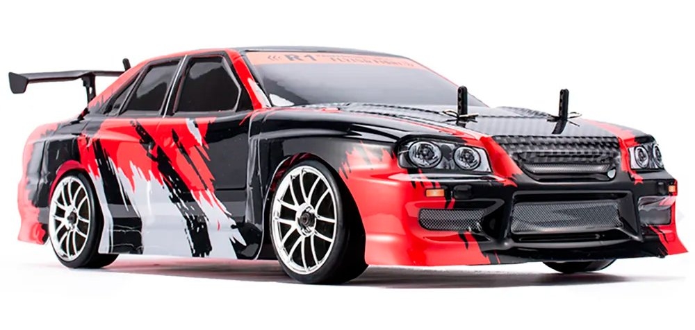 Большая модель для дрифта в кузове GTR (34-й) позволит вам освоить езду боком на разных типах поверхностей. Гоняйте по асфальту, песку или любому напольному покрытию в закрытых помещениях. Чтобы легко пускать машину в занос на машине предусмотрены - полный привод, специальные покрышки колес без протектора, а также мощный бесколлекторный двигатель. Регулятор оборотов поможет управлять автомобилем пропорционально, постепенно добавляя мощности мотору. Для общей жесткости шасси в верхней части модели установлена продольная металлическая пластина. Элементы подвески, такие как тяги, приводы, чашки изготовлены из алюминия или стали.
