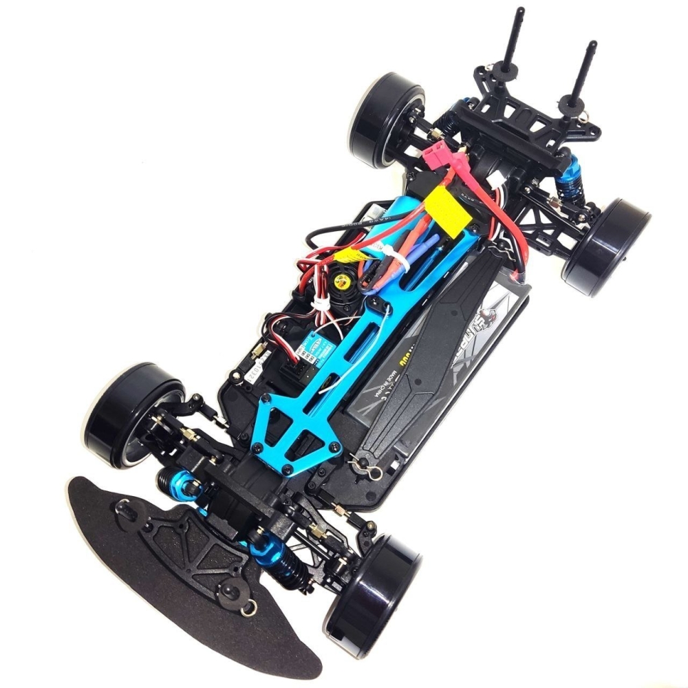Благодаря низкому клиренсу и продуманной конструкции удалось добиться положения центра тяжести на оси колес, что вместе с пружинами переменного шага и жесткими короткоходными амортизаторами дает модели невероятную управляемость и устойчивость. Полный привод дает максимальный контроль над моделью в заносе.