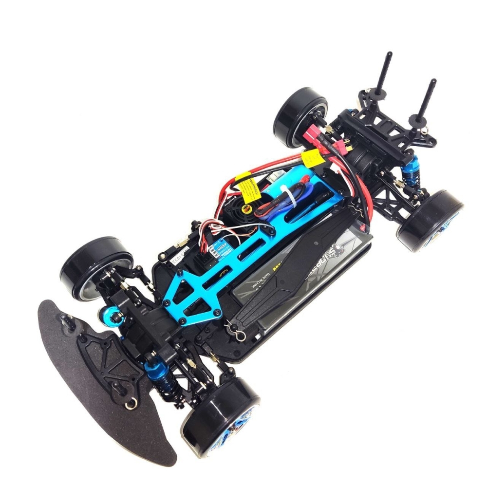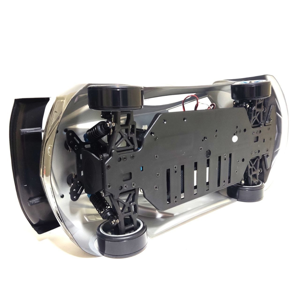 Благодаря низкому клиренсу и продуманной конструкции удалось добиться положения центра тяжести на оси колес, что вместе с пружинами переменного шага и жесткими короткоходными амортизаторами дает модели невероятную управляемость и устойчивость. Полный привод дает максимальный контроль над моделью в заносе.