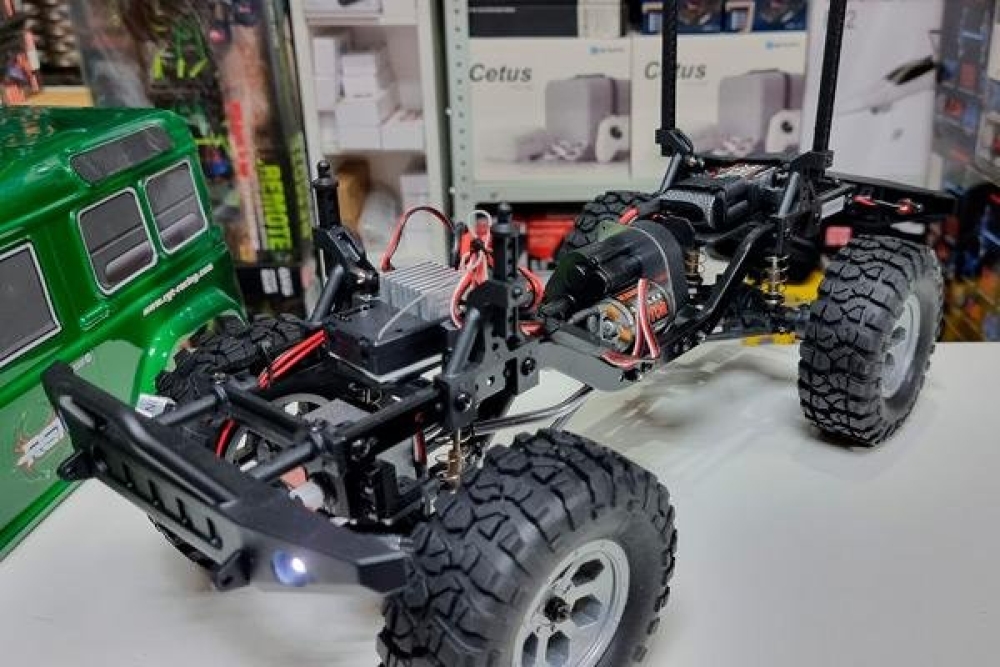 Мощного аккумулятора хватит до 30 минут захватывающих заездов. Еще большую реалистичность добавляет подсветка фар. Краулер управляется при помощи простого и удобного пульта ДУ 2.4 G, благодаря чему с управлением машинки быстро разберется даже новичок.