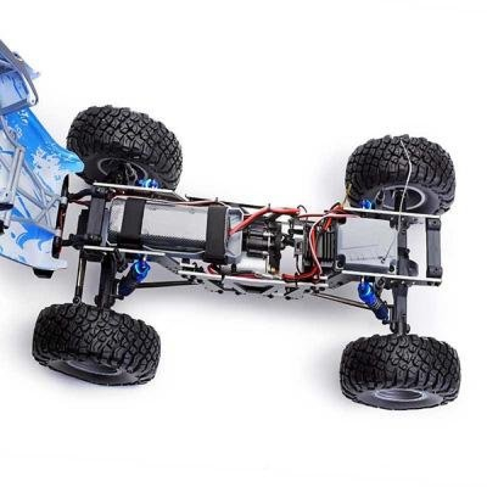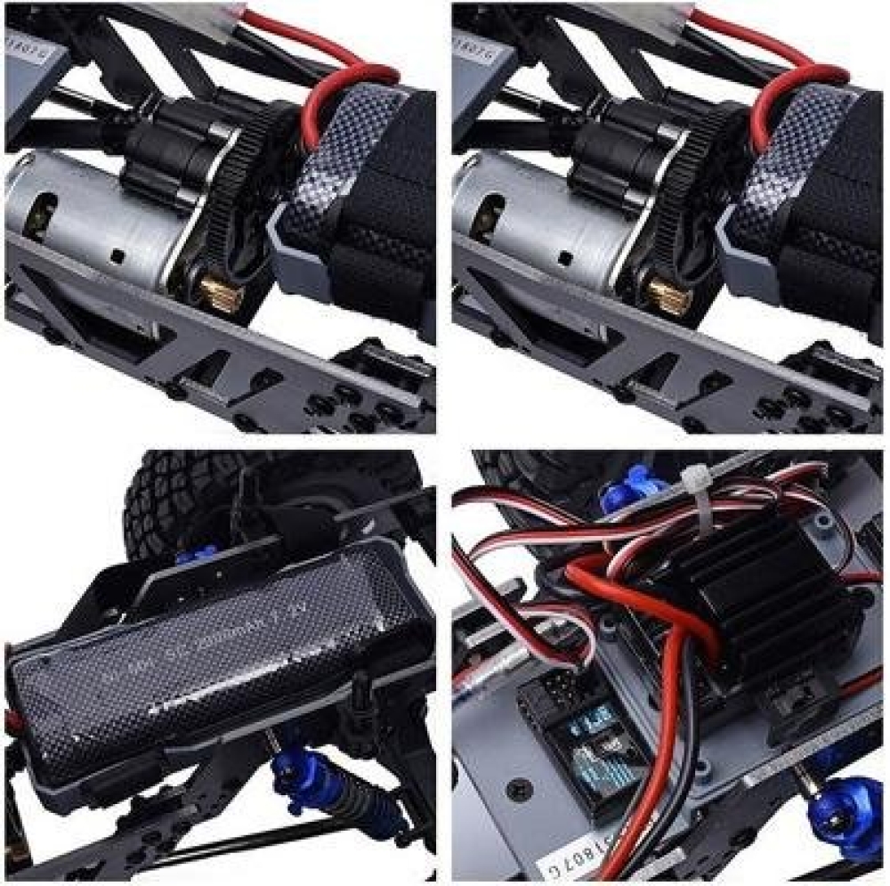 Дальность действия пульта управления составляет 150 м. Сервомеханизм имеет усилие 9 кг, что делает его очень надежным и долговечным. Электромотор RC 540 способен разогнать краулер до 12 км/ч, время работы машины - более 25 минут, время зарядки 120 минут. Краулер обладает одними из самых больших колес в своём классе. Протектор глубокий, колеса выполнены из мягкой резины. Рама выполнена полностью из стали, как и большинство элементов подвески.