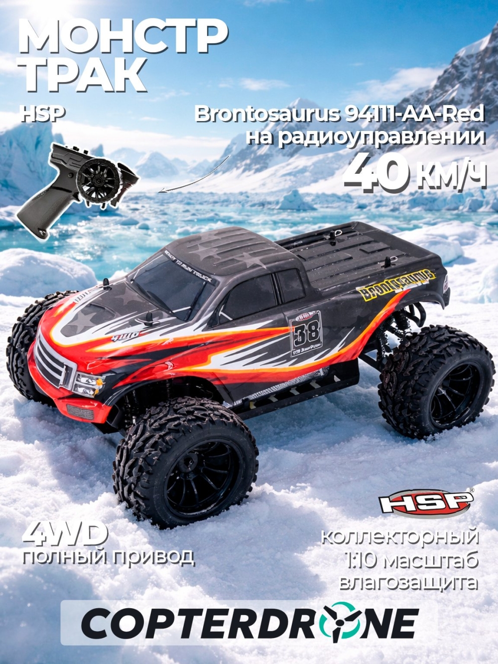 Радиоуправляемый внедорожник HSP Brontosaurus 4WD 1:10 2.4G - 94111-AA-Red - это обновленная версия полноуправляемой полноприводной модели внедорожника с электродвигателем. Модель имеет сертификат соответствия ЕАС.