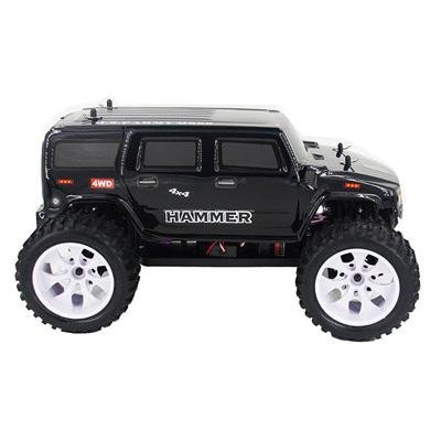 Популярный монстр-трак от компании HSP достаточно бюджетный, но при этом в нем большое количество металлических элементов шасси и подвески, таких так стальные приводы и алюминиевая продольная дека, придающая жесткость машинке. Корпус модели выполнен из чёрного легкого пластика повышенной прочности. В движение модель приводит мощный, надежный и проверенный временем электромотор 540 класса, развивающий скорость до 35 км/ч. Возможно использование различных типов аккумуляторов, которые также повлияют на итоговую скорость машинки. На каждое колесо установлено по 2 маслонаполненных пружинных амортизатора, что делает данного монстра практически неубиваемым для прыжков с трамплинов. Постоянный полный привод работает за счет металлических дифференциалов спереди и сзади.