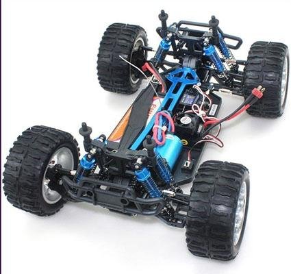 Радиоуправляемый монстр в 10 масштабе с полным приводом, двойными масляными амортизаторами на каждом колесе. Скорость до 50 км/ч. Двигатель бесколлекторый. Цвет синий