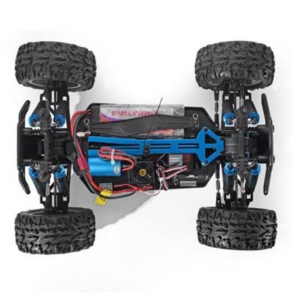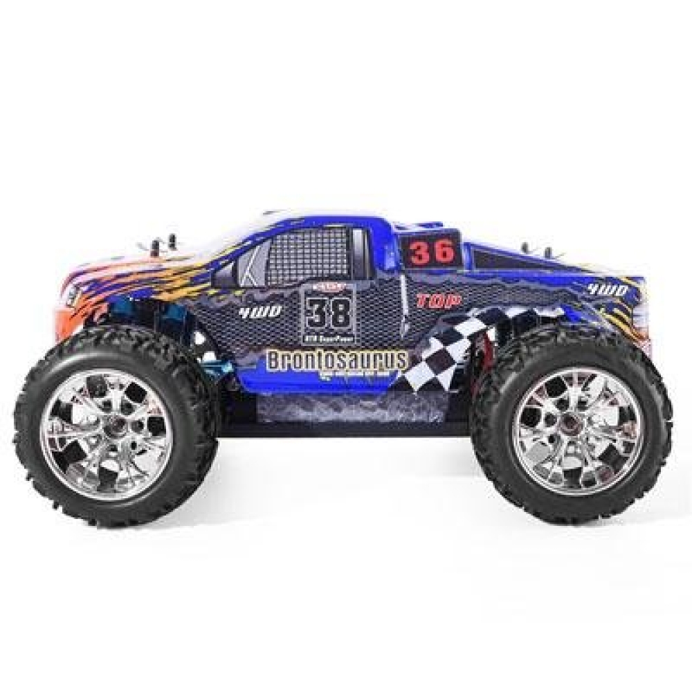 Новая версия знаменитого бронтозавра с обновленной электроникой, кузовом и ходовой частью. Предназначен для самых жестких и скоростных заездов по полному бездорожью, а также прыжкам с трамплинов. Среди преимуществ машинки стоит отметить алюминиевый тюнинг, алюминиевую раму жесткости 2мм по всей длине шасси, 8 масляных амортизаторов (по 2 на каждом колесе), влагозащищенный бесколлекторный электромотор, регулируемую гоночную подвеску. Монстр способен развивать скорость до 50 км/ч, при этом устойчивый внедорожник не перевернется даже в самых крутых поворотах. Полного заряда аккумулятора хватит на 15-30 минут увлекательных гонок. Из особенностей подвески можно выделить - регулируемые тяги и стальные приводы, металлические амортизаторы и дифференциалы. Таким большим количеством металлических деталей не может похвастаться ни одна модель в стоковой сборке. Монстр может быть полностью погружен под воду без последствий, поэтому пересечений рек и луж не составит труда. За полный привод отвечает система из 2-х дифференциалов с металлическими шестернями и алюминиевый карданный вал.