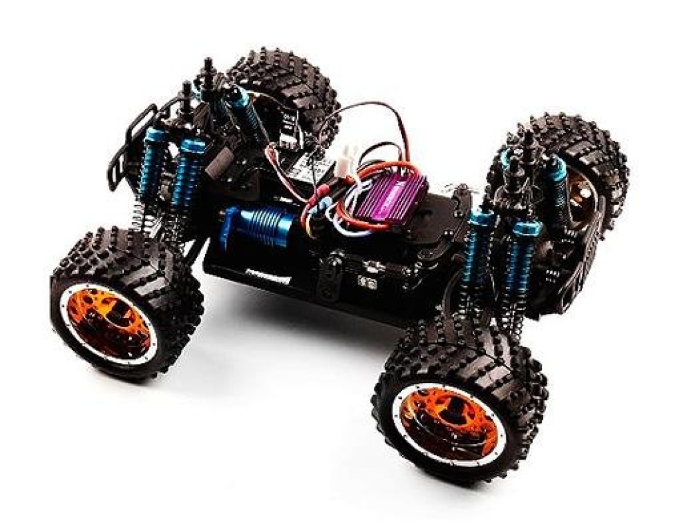 Конструкция KidKing надежна и модифицируема, а дизайн сочетает все атрибуты, присущие спортивным моделям. Пластиковый кузов легко снимается, рама машинки прочная, рычаги подвески стойкие. В машинку установлен бесколлекторный двигатель, надежные стальные карданы трансмиссии, а на случай бездорожья уже предусмотрена внедорожная резина.