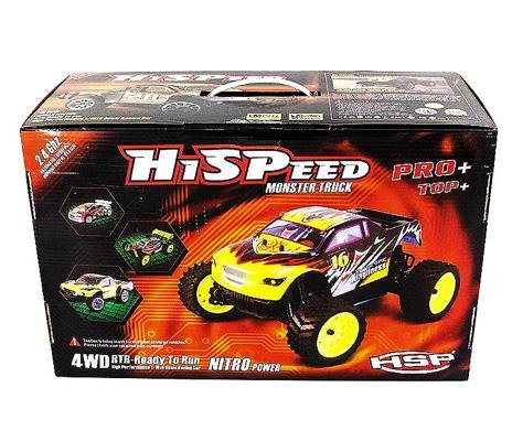 Радиоуправляемый монстр от HSP в масштабе 1:16. Полный привод, влаго- и пылезащищенные серво и регулятор оборотов. Подходит для бездорожья и прыжков с трамплинов. Корпус - чёрный с серым и синим.