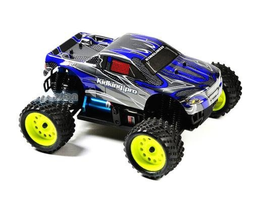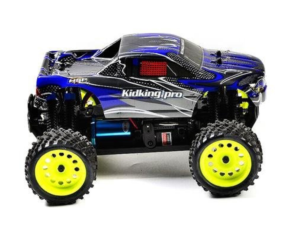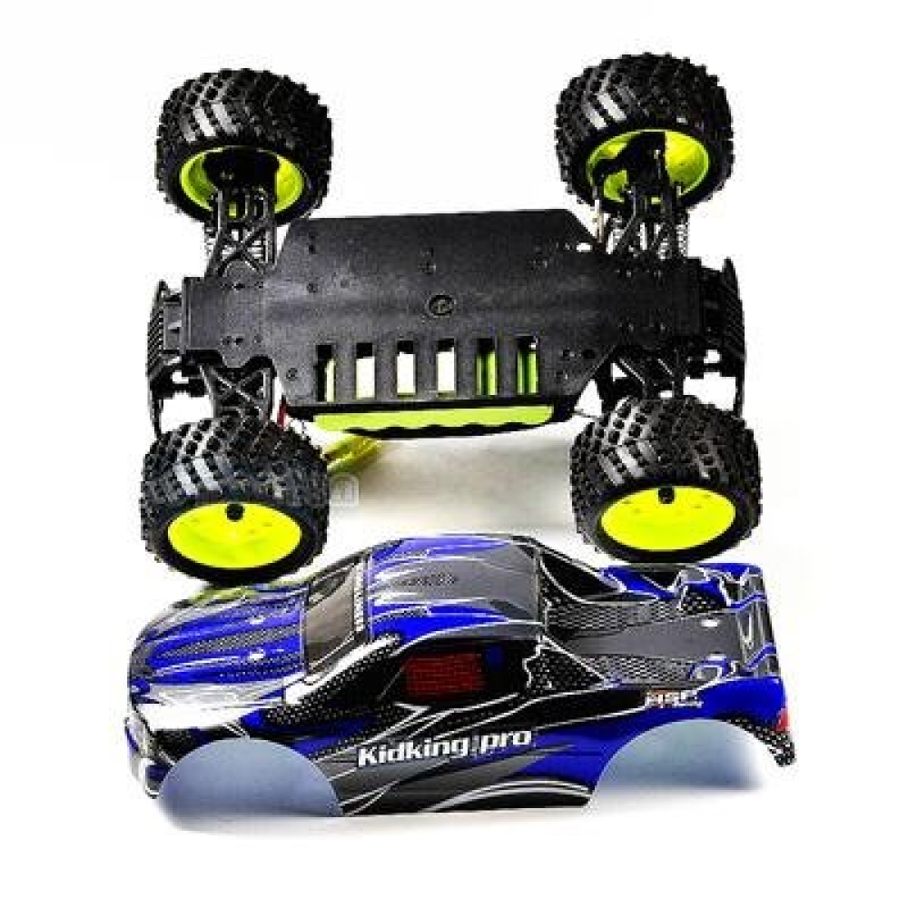 Конструкция KidKing надежна и модифицируема, а дизайн сочетает все атрибуты, присущие спортивным моделям. Пластиковый кузов легко снимается, рама машинки прочная, рычаги подвески стойкие. В машинку установлен бесколлекторный двигатель, надежные стальные карданы трансмиссии, а на случай бездорожья уже предусмотрена внедорожная резина.