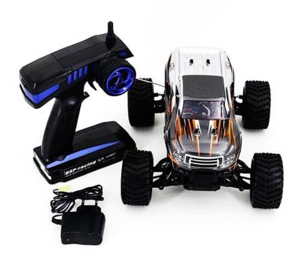 Радиоуправляемый монстр HSP KidKing PRO 4WD RTR масштаб 1:16 2.4G - 94186PRO|18693 - доступный по цене и мощный внедорожник от компании HSP. Подходит и начинающим, и любителям радиоуправляемых моделей, отличается удобным управлением, а также надежностью: у нее постоянный полный привод 4WD, все компоненты установлены на прочную раму, у трансмиссии - стальной кардан, а у подвески стойкие рычаги. Рулевые тяги настраиваются, пластиковый кузов легко снимается с машинки, а для лучшей проходимости машинки установлена специальная внедорожная резина. Модель работает на электродвигателе 3 300 оборотов на вольт.