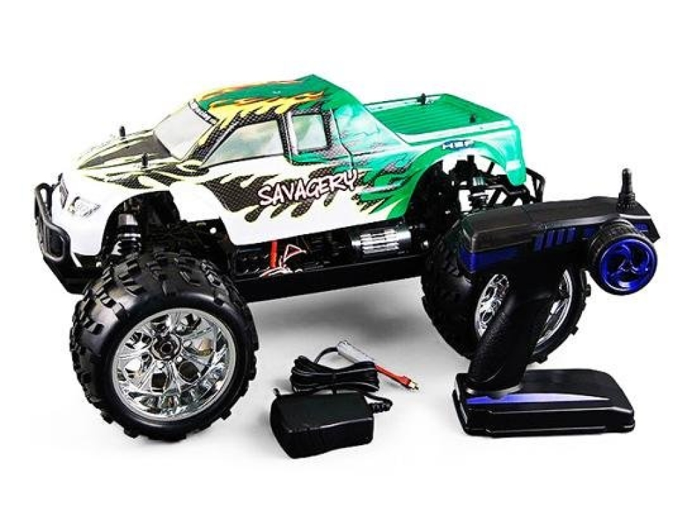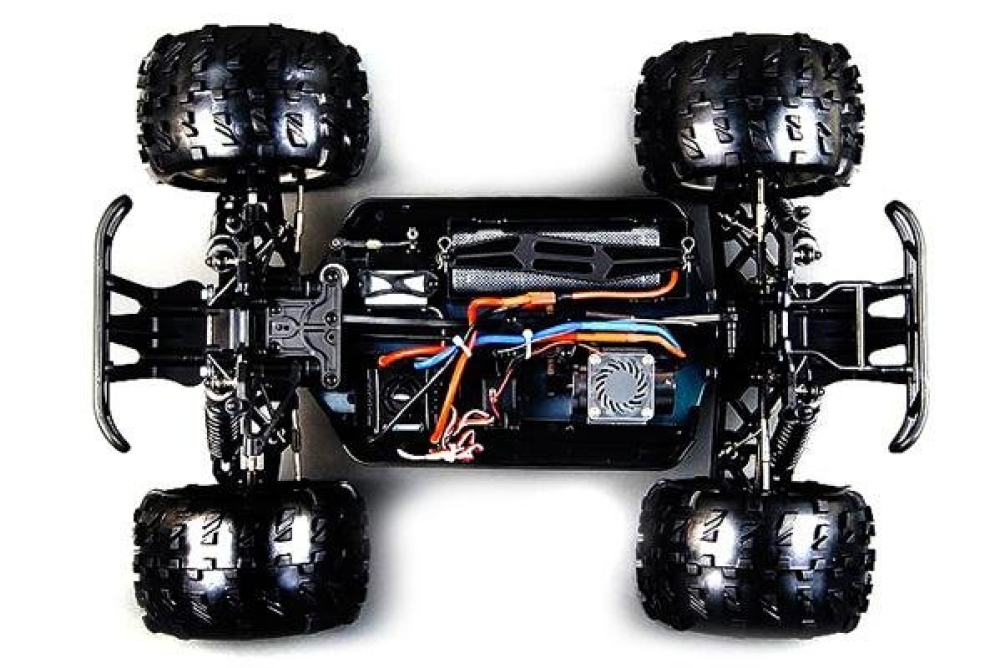 Внедорожник не боится пыли, грязи и влаги - его электроника надежно защищена от их попадания. В комплектации идут все необходимые устройства и аксессуары, позволяющие запустить машинку прямо из коробки. Вам потребуется только полностью зарядить аккумулятор. Корпус модели выпускается в разных цветах - чёрном, бело-зеленом, синем с желто-оранжевыми декалями.
