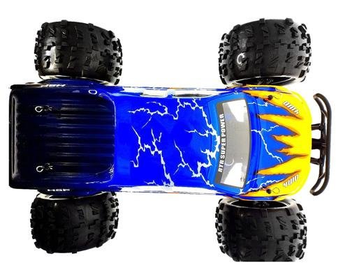 Радиоуправляемый монстр от HSP в масштабе 1:8. Под прочным кузовом - бесколлекторный двигатель 2399 KV и регулятор скорости 80A с системой охлаждения. Модель имеет сертификат соответствия Ростест. Цвет корпуса - синий с оранжевым и желтым.