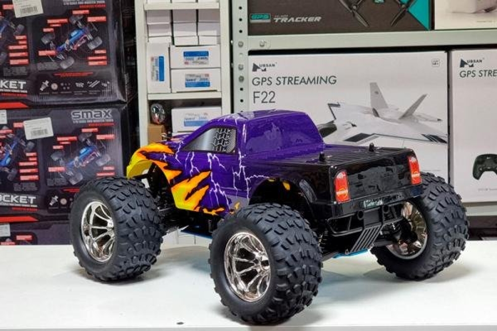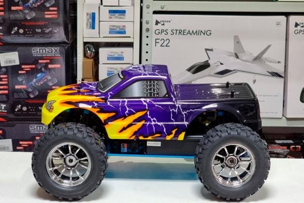 Монстр трак с двигателем внутреннего сгорания и полностью готовый к заездам. Не требует каких либо существенных настроек и доработок, вам потребуется только топливо и свеча накала для запуска. Он имеет полностью стальное шасси с металлическими рычагами и приводами колес, которые смогут выдержать мощность нитрометанового двигателя. SH-18 ,2.5 куб. см двигатель требует минимальных настроек и обкатки, чтобы практически сразу эксплуатировать этого монстра по полному бездорожью. Воздушный фильтр идет в комплекте. Подвеска независимая и имеет двойные пружинные амортизаторы. Машинка оснащена увеличенным топливным баком, чтобы вы могли кататься более 30 минут. Предназначена для любых типов поверхности, особенно для кочек и ям, трамплинов и камней.