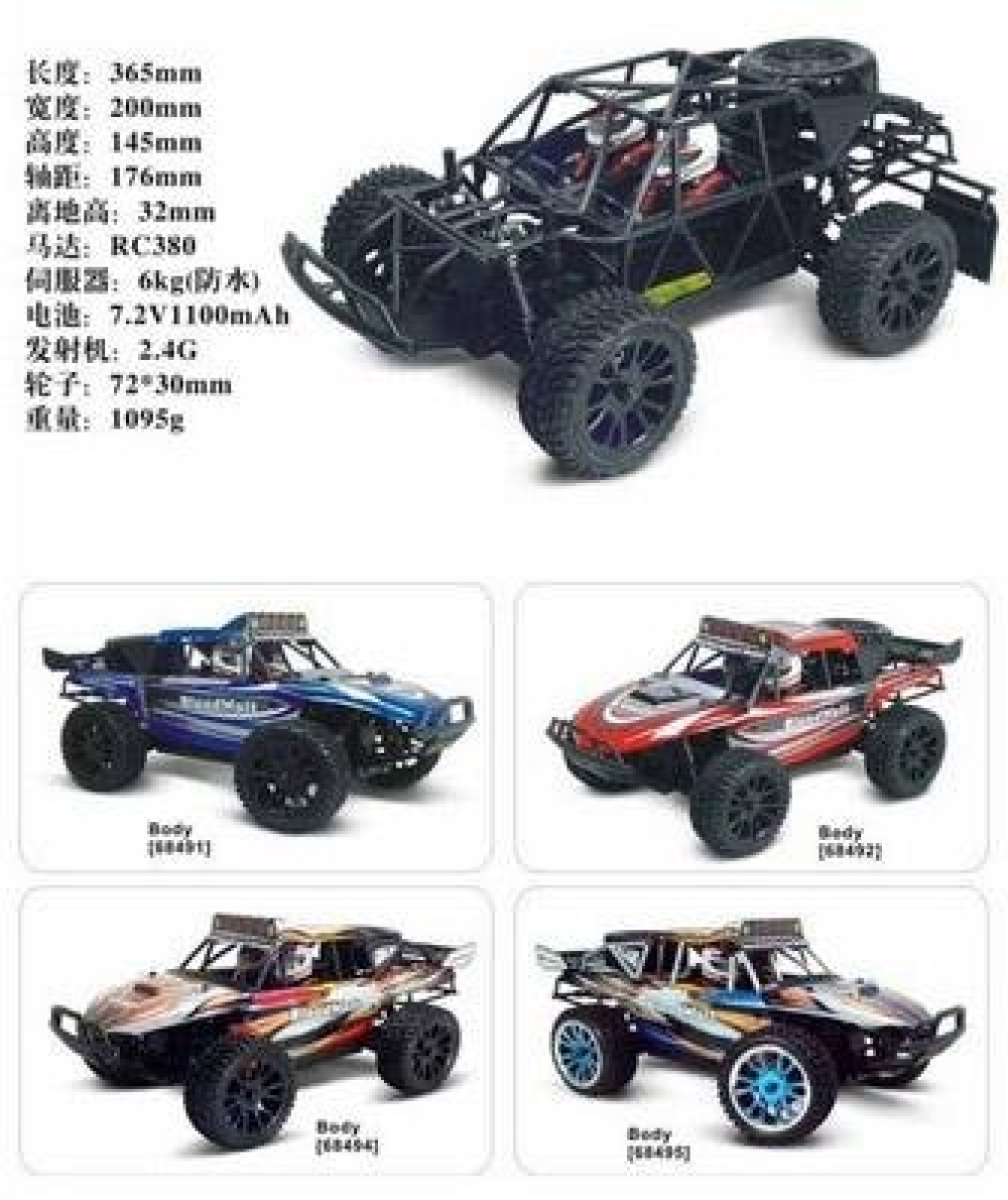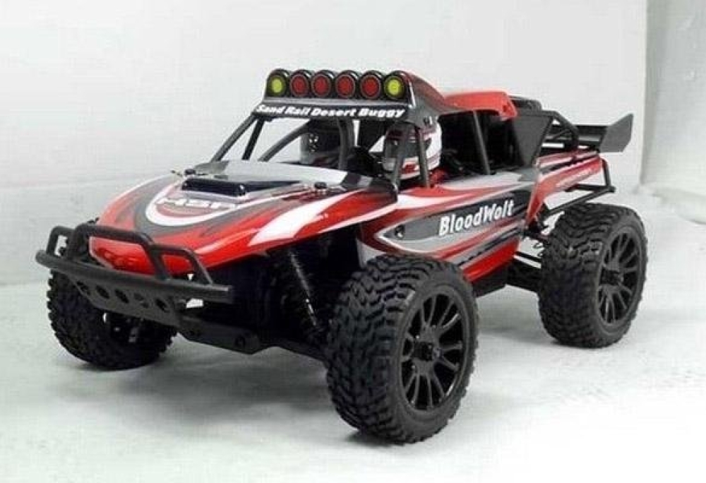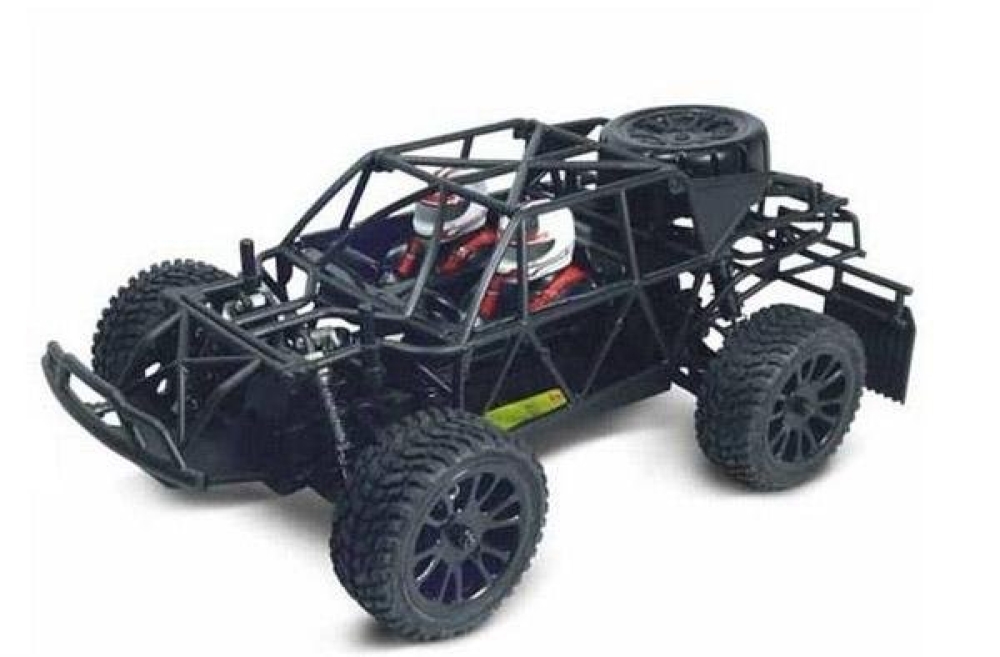 Полноприводная небольшая багги с каркасом безопасности под кузовом. Весьма подробно повторяет настоящий автомобиль. Тут есть и полноценная многорычажная подвеска на амортизаторах с пружинами, и дифференциалы, обеспечивающие привод на все 4 колеса, и карданный вал. В движение машинку приводит бесщёточный мотор brushless. Поду кузовом спрятан трубчатый каркас безопасности, который сделает машинку существенно крепче, а в кабине находится пилот и его штурман. Наиболее подверженные ударам детали изготовлены из алюминия. Машинка подойдет как первый радиоуправляемый автомобиль, поскольку имеет простое и понятное управление, прочные детали шасси, а также только самые полезные настройки управления. Модель легко обслуживать и ремонтировать самостоятельно, каких либо специальных навыков не требуется.
