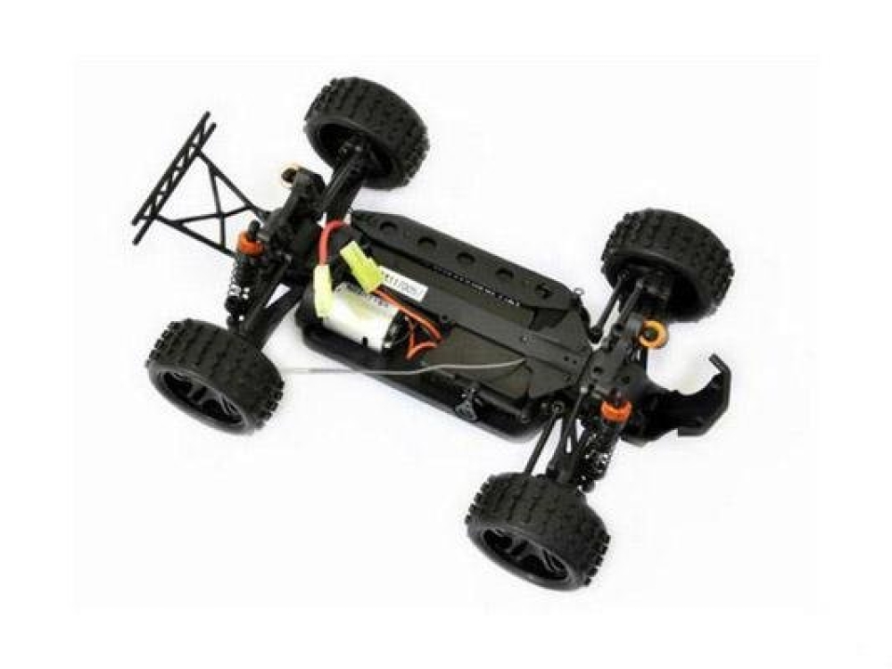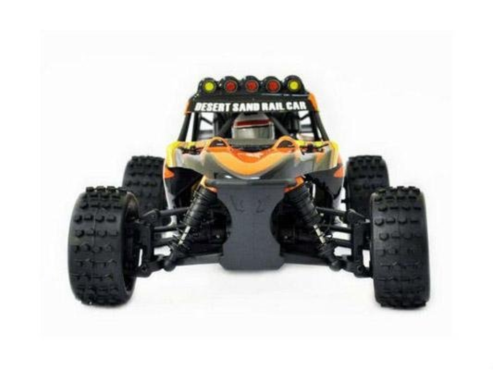 Полноприводная небольшая багги с каркасом безопасности под кузовом. Весьма подробно повторяет настоящий автомобиль. Тут есть и полноценная многорычажная подвеска на амортизаторах с пружинами, и дифференциалы, обеспечивающие привод на все 4 колеса, и карданный вал. В движение машинку приводит щеточный мотор с радиатором охлаждения. Машинка подойдет как первый радиоуправляемый автомобиль, ,поскольку имеет простое и понятное управление, не очень высокую скорость и прочные детали шасси, а также только самые полезные настройки управления. Модель легко обслуживать и ремонтировать самостоятельно, каких либо специальных навыков не требуется.