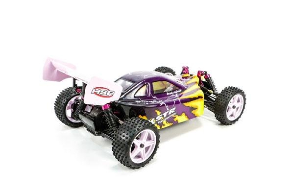Багги от HSP на популярной платформе, которая включает в себя большое количество металлических деталей, например регулируемые тяги, дифференциалы, приводы колес, рулевые тяги, центральный вал. Особенности и преимущества модели X-STR: