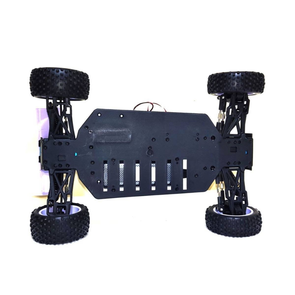 Модель управляется на частоте 2,4 GHz, которая обладает отменной помехоустойчивостью и четко принимает сигнал на расстоянии до 150 метров. Ходовые характеристики машины обеспечены постоянным полным приводом благодаря которому сохраняется курсовая устойчивость и проходимость машины. Специально разработанная резина цепко схватывает любое покрытие и придает модели необходимую устойчивость при маневрах.