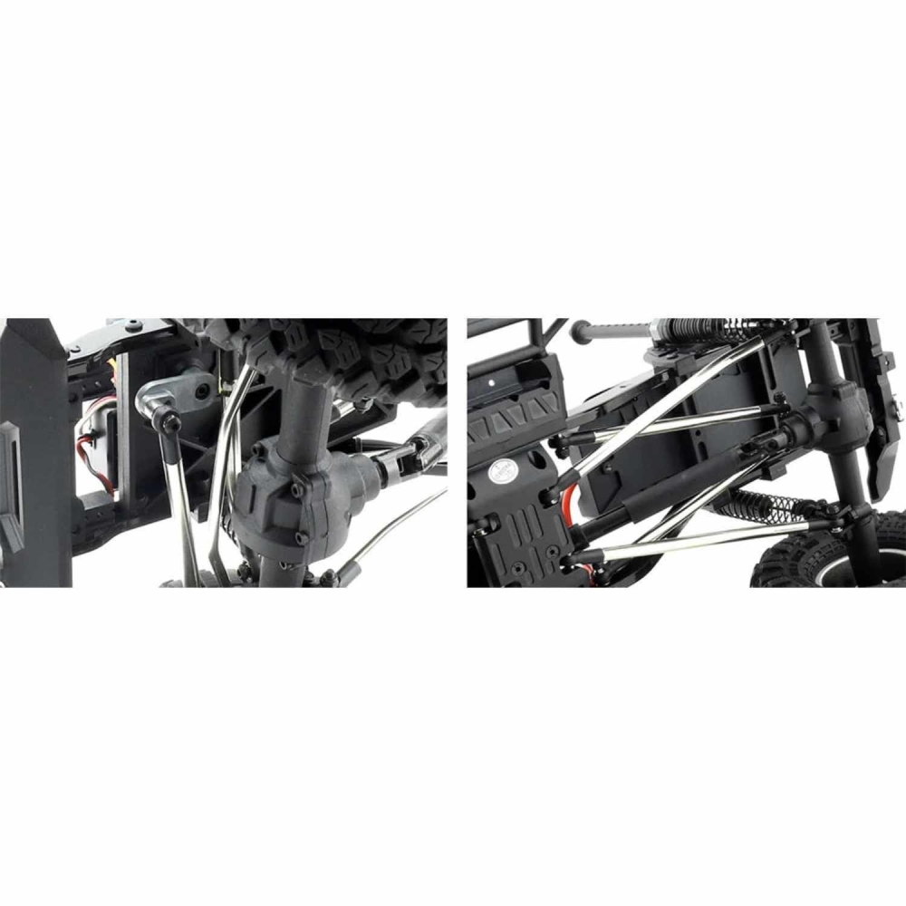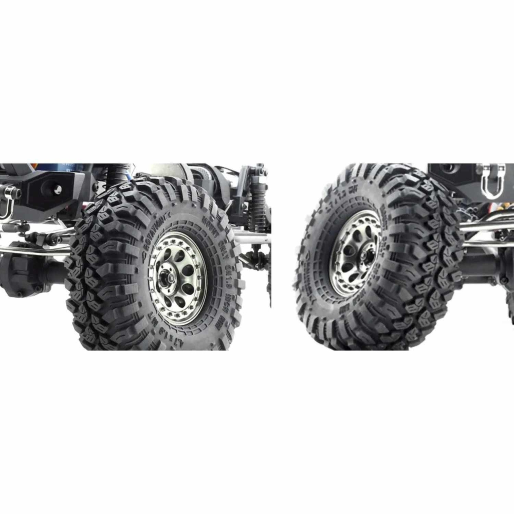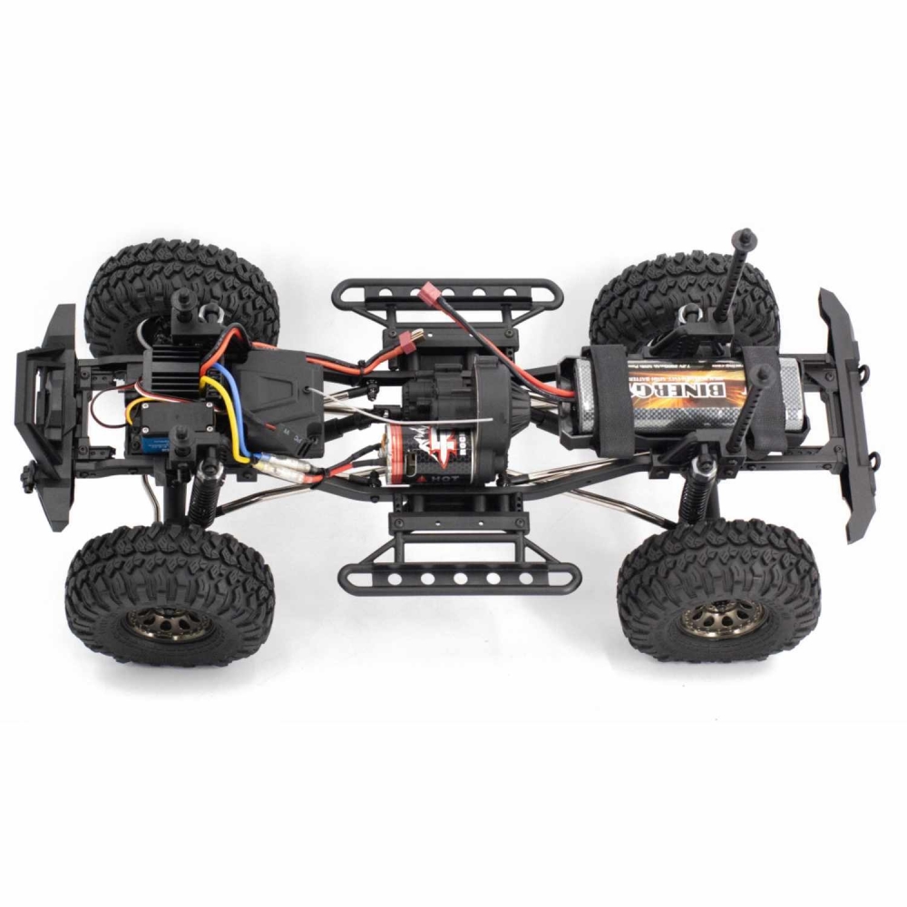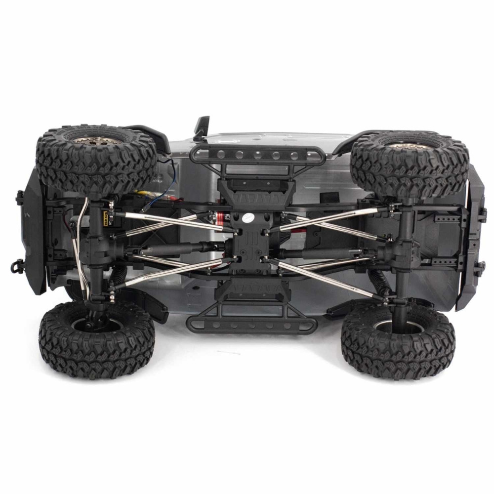 Обновленная версия большого краулера в масштабе 1:10. Построен на металлической раме с алюминиевыми карданными приводами и стабилизаторами. Редукторы и все шарнирные соединения также выполнены из различных металлических сплавов. Коллекторный электромотор 540-го класса имеет высокий крутящий момент, что поможет модели забираться на самые крутые препятствия и преодолевать грязевые засады. Краулер оснащен мощными светодиодными фарами для езды в ночное времОсобенности и преимущества модели: