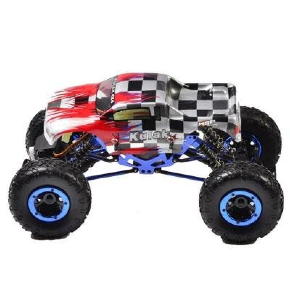 Компактный краулер HSP Kulak справится с любыми препятствиями и бездорожьем - ямы, камни, ухабы. Благодаря большому ходу подвески, полному приводу и рельефным протекторам краулер без труда проходит по неровной поверхности, песку, камням, корням деревьев, отличное сцепление обеспечивает устойчивость даже при поднятии в горку. Мощный коллекторный мотор позволяет машинке проехать по самой сложной местности на приличной для подобных моделей скорости. Модель имеет металлическую раму, карданы, тяги, стабилизаторы, что существенно увеличивает прочность. Даже резина имеет специальный состав, разработанный для работы при низких температурах и максимально снижающий вероятность скольжения и пробуксовки. Полного заряда аккумулятора хватит до 20-30 минут драйвовых заездов на расстоянии до 200 м.