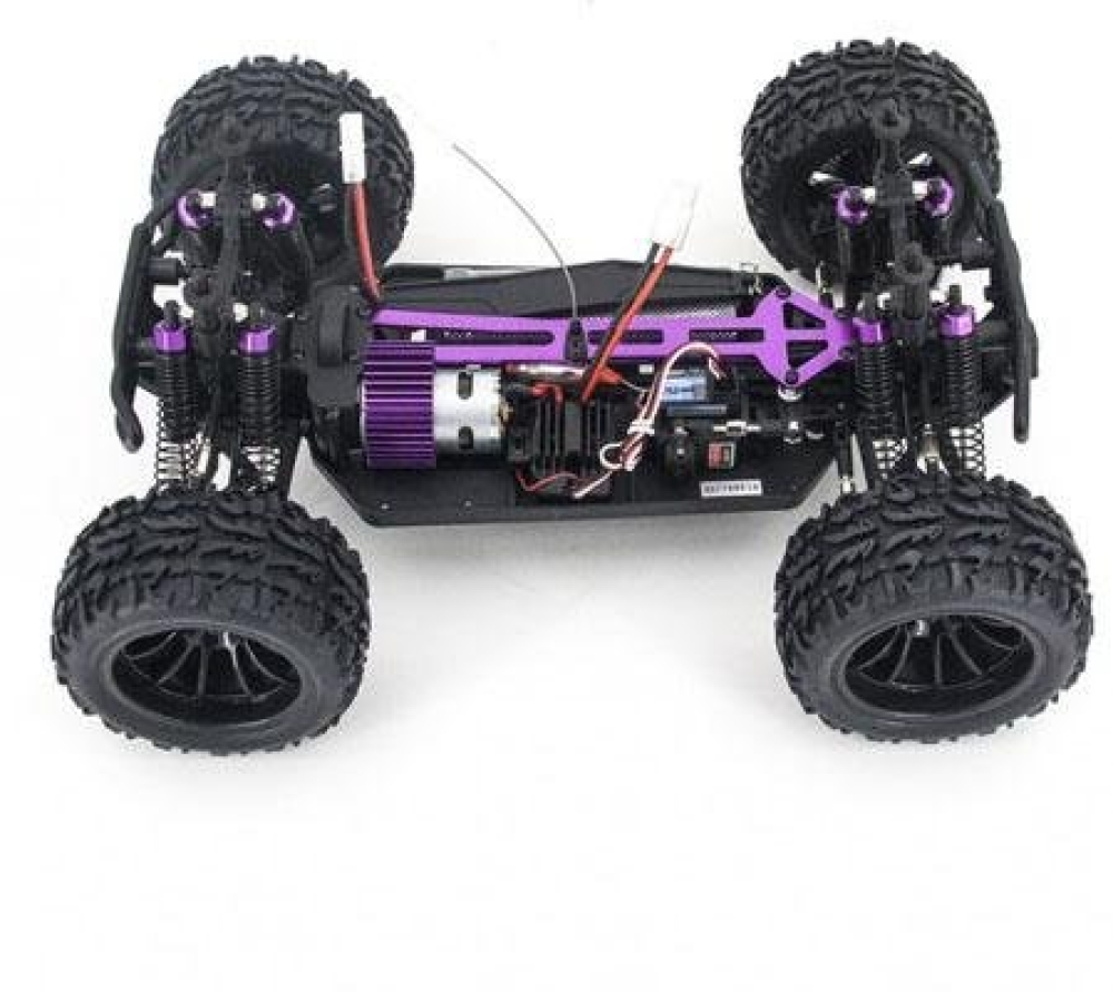 Популярный монстр трак от компании HSP имеет не высокую стоимость, при этом большое количество металлических элементов шасси и подвески, таких так стальные приводы и алюминиевая продольная дека, придающая жесткость машинке. В движение модель приводит мощный, надежный и проверенный временем электромотор 540 класса, развивающий скорость до 50 км/ч. Возможно использование различных типов аккумуляторов, которые также повлияют на итоговую скорость машинки. На каждое колесо установлено по 2 маслонаполненных пружинных амортизатора, что делает данного монстра практически неубиваемым для прыжков с трамплинов. Постоянный полный привод работает за счет металлических дифференциалов спереди и сзади.