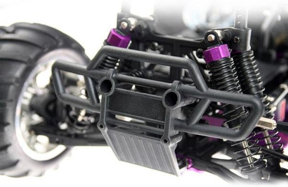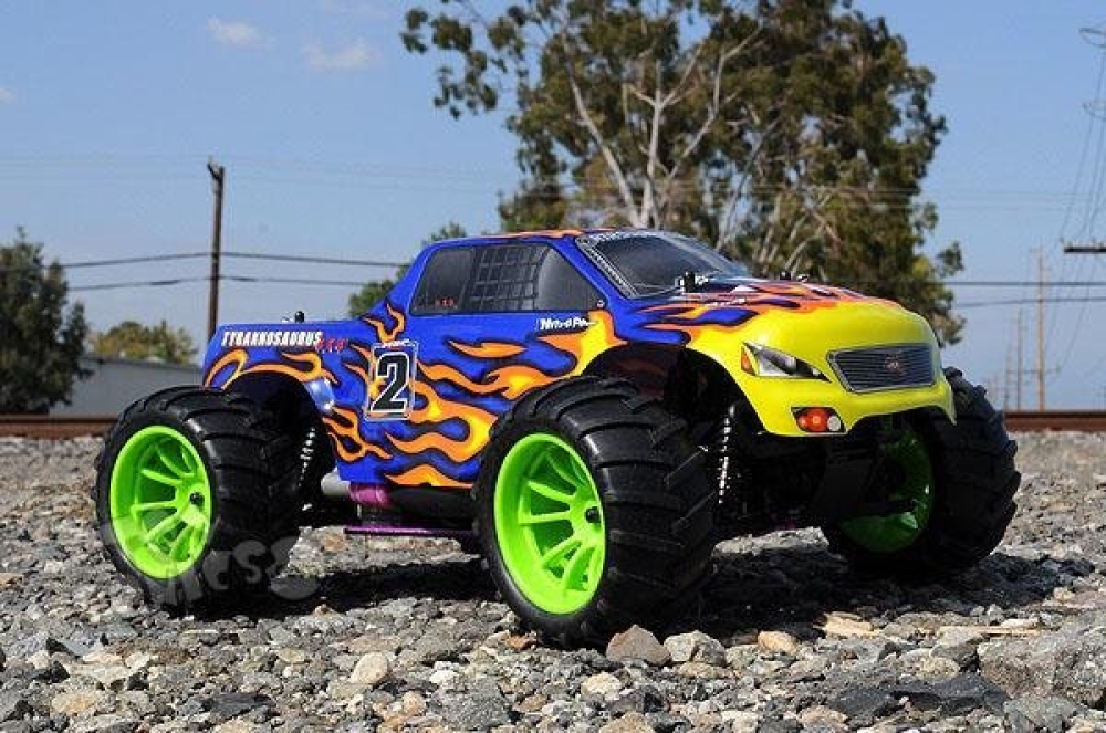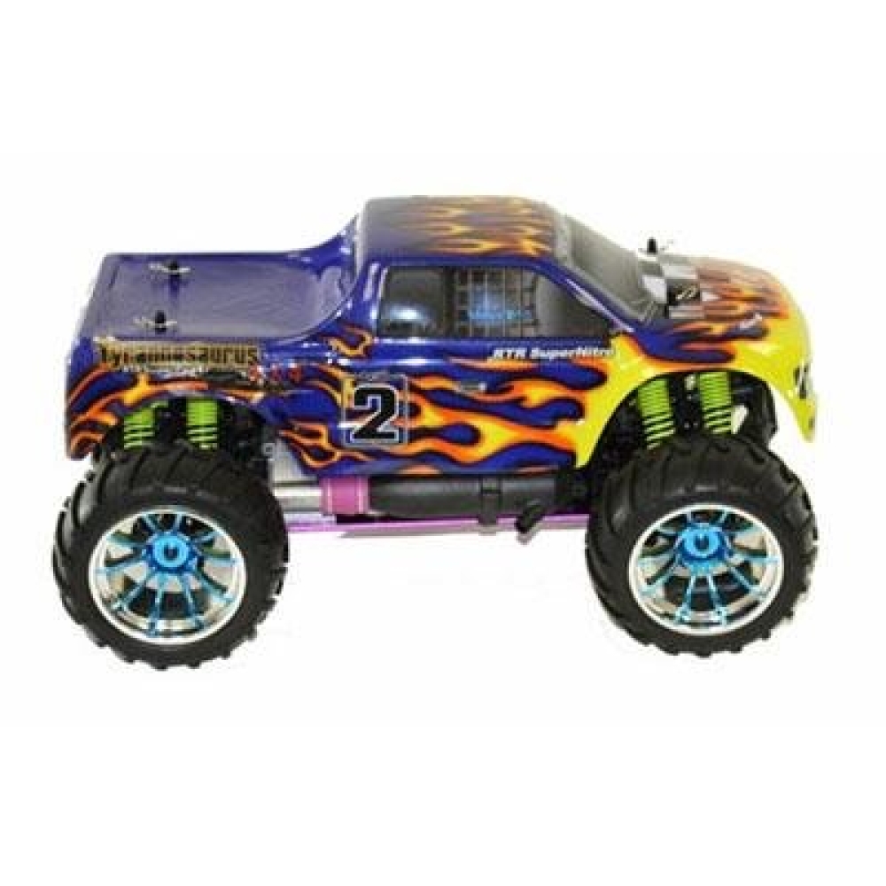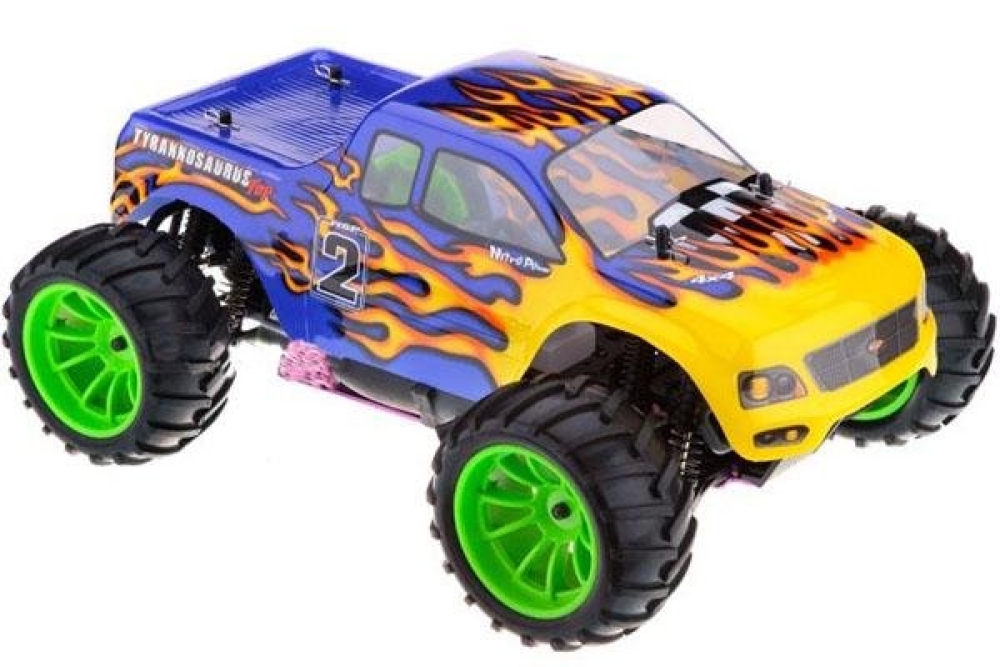 Радиоуправляемый внедорожник HSP Tyrannosaurus оснащен калильным двигателем внутреннего сгорания, работающий на 20% нитрометаноловом топливе. Эта модель даст отличные представления об устройстве автомобиля, т.к. достаточно точно повторяет настоящие машины, начиная от шасси и подвески, и заканчивая двс и выхлопной системой. Тут также имеются маслонаполненные амортизаторы и воздушный фильтр, дифференциалы и приводные валы. Модель очень прочная, а все детали можно при желании заменить. Мотор требует ухода и обслуживания. Нужно менять масло, проводить профилактическое обслуживание и чистить. Есть также топливный насос. Особенности и преимущества модели: