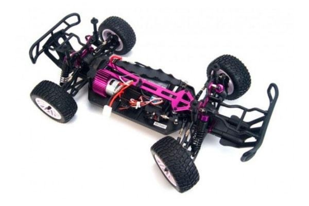 Шорт кос трак от HSP на популярной платформе, которая включает в себя большое количество металлических деталей, например, регулируемые тяги, дифференциалы, приводы колес, рулевые тяги, центральный вал. Вдоль шасси установлена алюминиевая пластина 2мм для дополнительной жесткости модели во время сильных лобовых столкновений. Низкий центр тяжести и подготовленная резина позволят заходить в повороты на большой скорости на любой поверхности - песок, гравий, асфальт, трава. Подвеска имеет возможность регулировать развал-схождение и высоту.