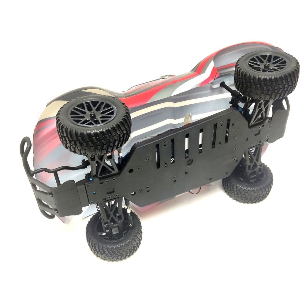 Данная машина имеет полный привод и металлическую трансмиссию, что позволяет ей прекрасно маневрировать на сложно проходимых участках трассы. Модель построена на легком, но весьма прочном шасси, которое имеет низкий центр тяжести. В нижней части оно усилено декой из алюминиевого сплава. Шорт-корс трак Desert Rally HSP 94170 характеризуется небольшой массой, отличной управляемостью и проходимостью благодаря продуманной подвеске. Последняя может автоматически регулироваться по высоте с помощью пружин переменного шага. В стандартной комплектации имеется радиоаппаратура, работающая на частоте 2,4 ГГц, зарядный блок и емкая батарея.