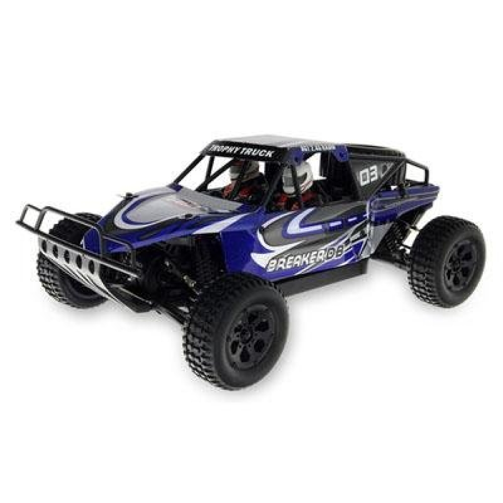 Менее мощная версия популярного багги, но не менее надежная. Коллекторная система проста и не дорога в обслуживании, и при этом отлично подходит начинающим гонщикам, т.к. максимальная скорость не более 35 км/ч, а соответственно меньше шансов сильно разбить модель об столб или во время прыжков с трамплинов. Шасси изготовлено с применением металлических элементов - амортизаторы имеют алюминиевый корпус, также как и верхние рычаги и рулевое управление, которые при этом можно настраивать.