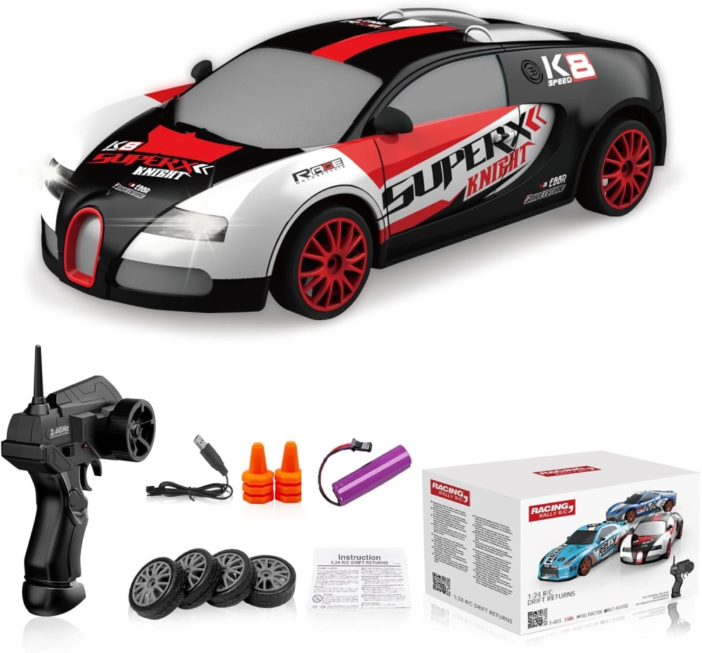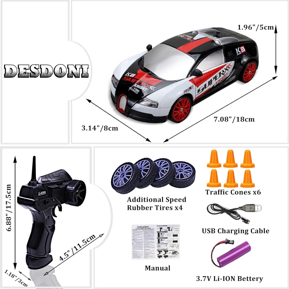 Комплект поставки: полностью собранная модель машины с окрашенным кузовом и установленной электроникой 2.4G, аккумулятор - 500 mAh, зарядное устройство для аккумулятора, пульт управления, дорожные конусы, запасной комплект колес, инструкция по эксплуатации