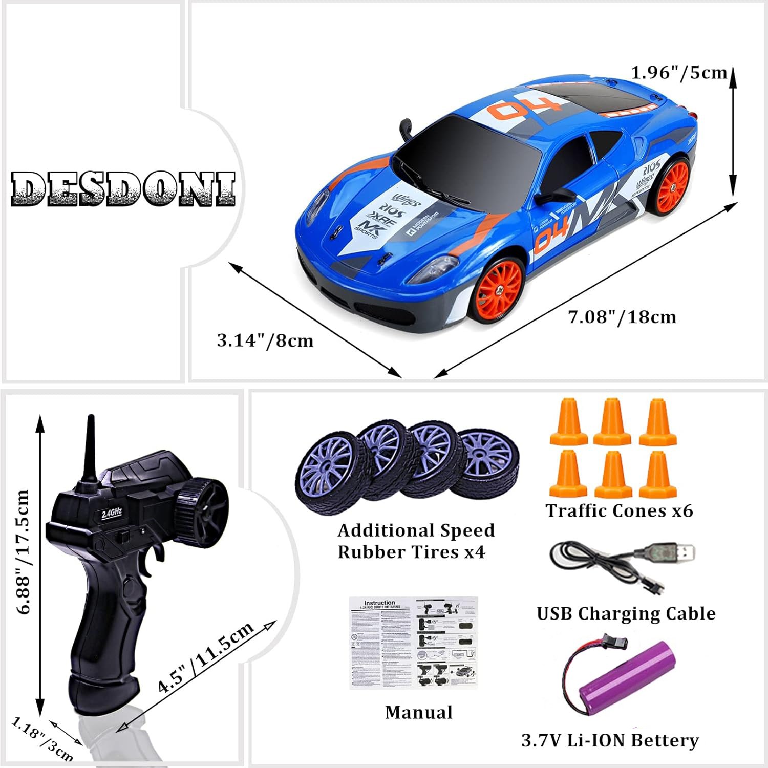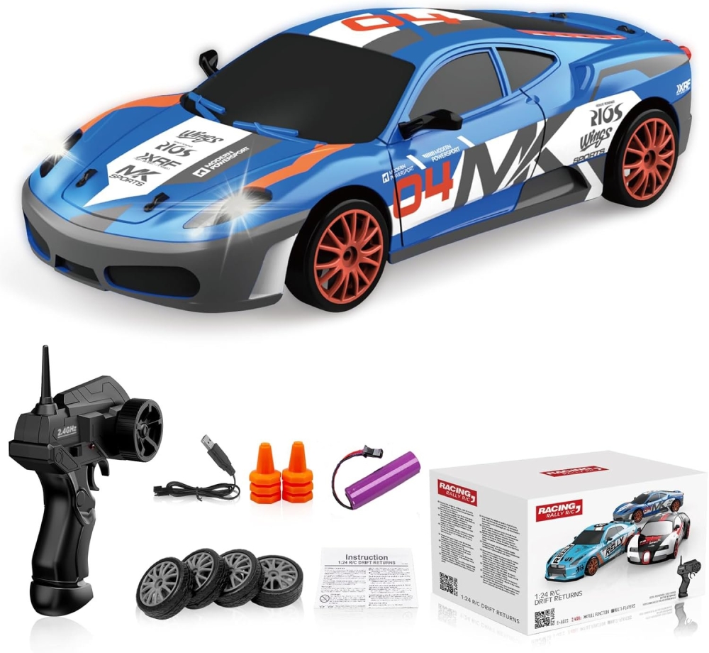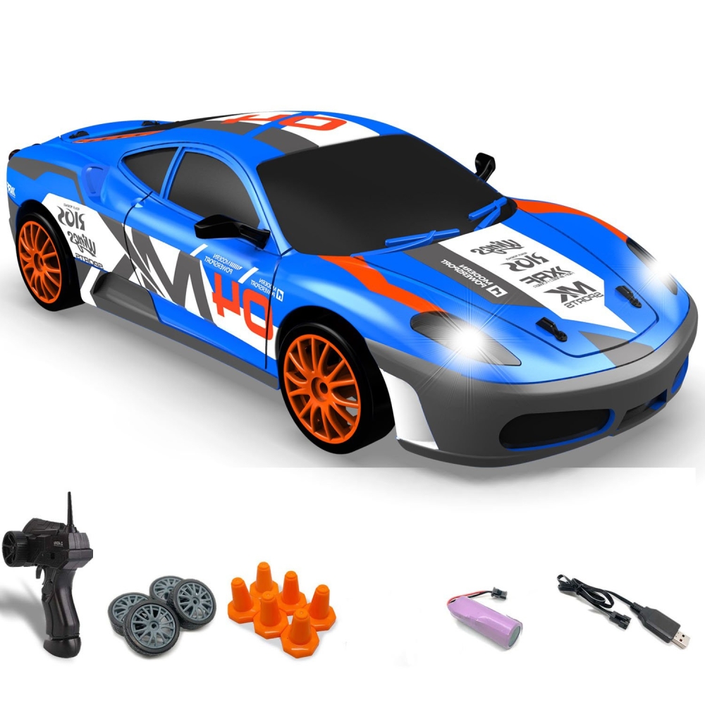 Мини дрифт машинка отлично подойдет для дрифта как по дому, так и на улице. Имеет задний привод и мощный мотор, который позволит заходить в повороты даже новичкам. Масштаб 1:24 позволят лихо проезжать между любыми препятствиями. Машинка выполнена по лицензии компании Ferrari, соответственно детализация модели максимальная, в точности повторяющая оригинал. Передние фары оснащены светодиодными огнями, которые загораются при включении. В комплекте идет 6 оранжевых конусов, поэтому вы самостоятельно сможете выстраивать маршрут дрифта. Также идет сменный комплект колес с резиновыми покрышками и протектором.