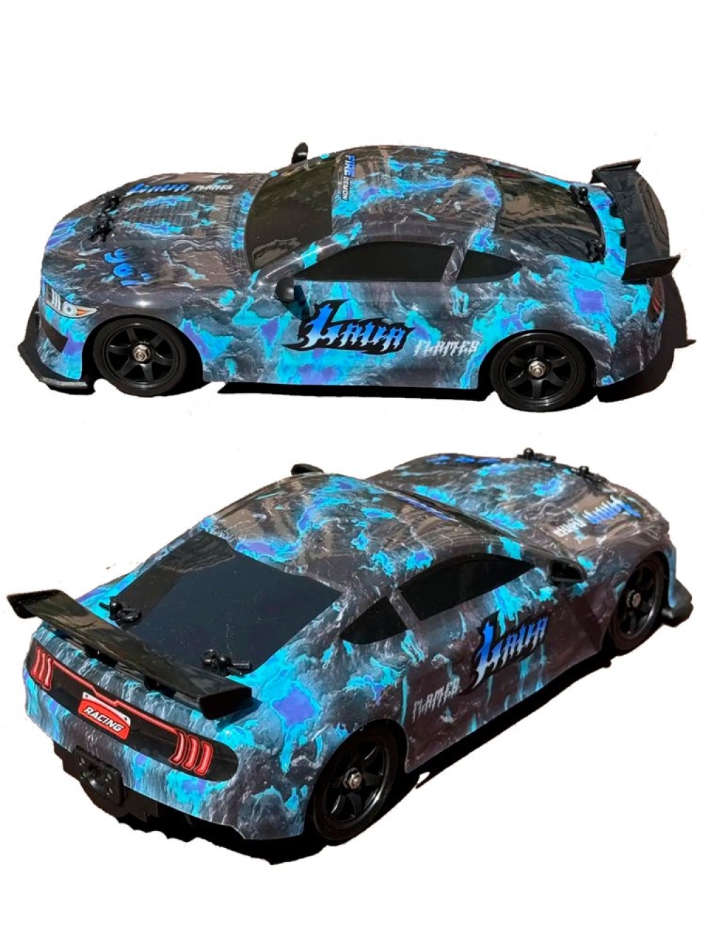 Дрифт - это зрелищное шоу, требующее от владельца машинки умения контролировать автомобиль в заносе и проходить трассу, используя максимально глубокое скольжение. Серия Racing, Rally RC от HB Toys обеспечивает всё для того, чтобы начинающий смог обучиться этому искусству и посоревноваться с друзьями, при этом сделав из заезда эффектное шоу. Во время заезда у машинки светятся фары. Также у нее есть защита от брызг и влаги - в комплекте идет емкость для заправки воды, и из выхлопной трубы авто можно активировать спрей-пар, который также распыляется во время движения.