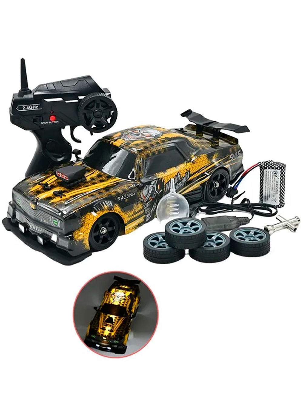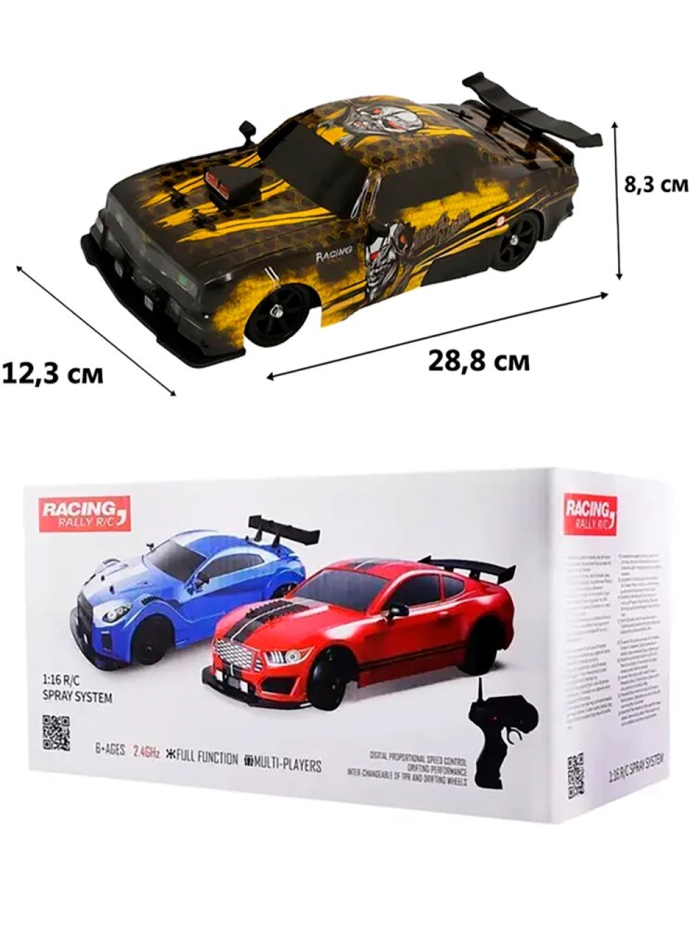 Дрифт - это зрелищное шоу, требующее от владельца машинки умения контролировать автомобиль в заносе и проходить трассу, используя максимально глубокое скольжение. Серия Racing, Rally RC от HB Toys обеспечивает всё для того, чтобы начинающий смог обучиться этому искусству и посоревноваться с друзьями, при этом сделав из заезда эффектное шоу. Во время заезда у машинки светятся фары. Также у нее есть защита от брызг и влаги - в комплекте идет емкость для заправки воды, и из выхлопной трубы авто можно активировать спрей-пар, который также распыляется во время движения.
