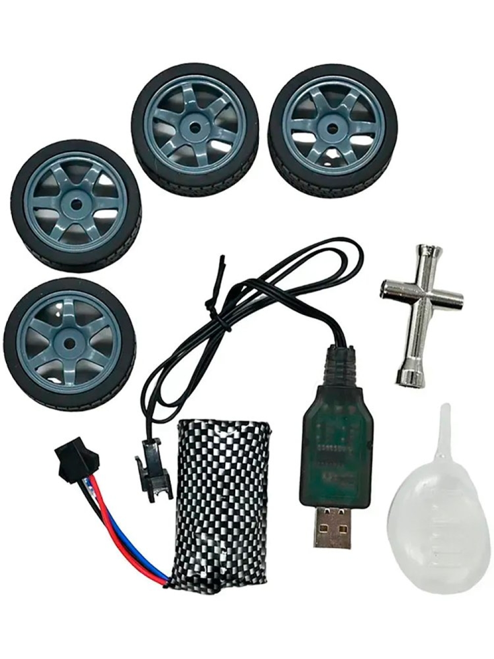 В наборе, помимо стандартной для RTR-версий комплектации, идёт комплект запасных колес и ключ для их смены.
