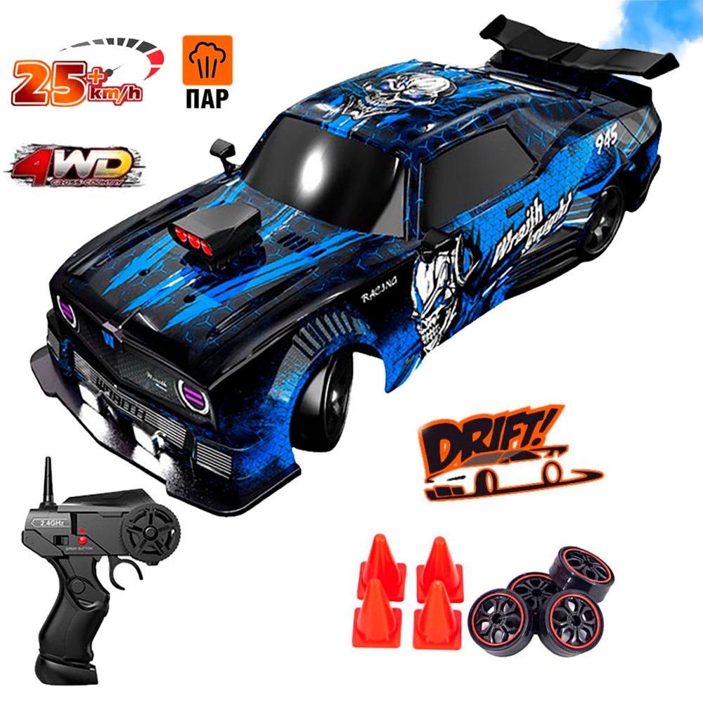 | Комплектация | Пульт управления, машинка, аккумулятор, зарядное устройство, инструкция, 4 конуса, 4 запасных колеса |