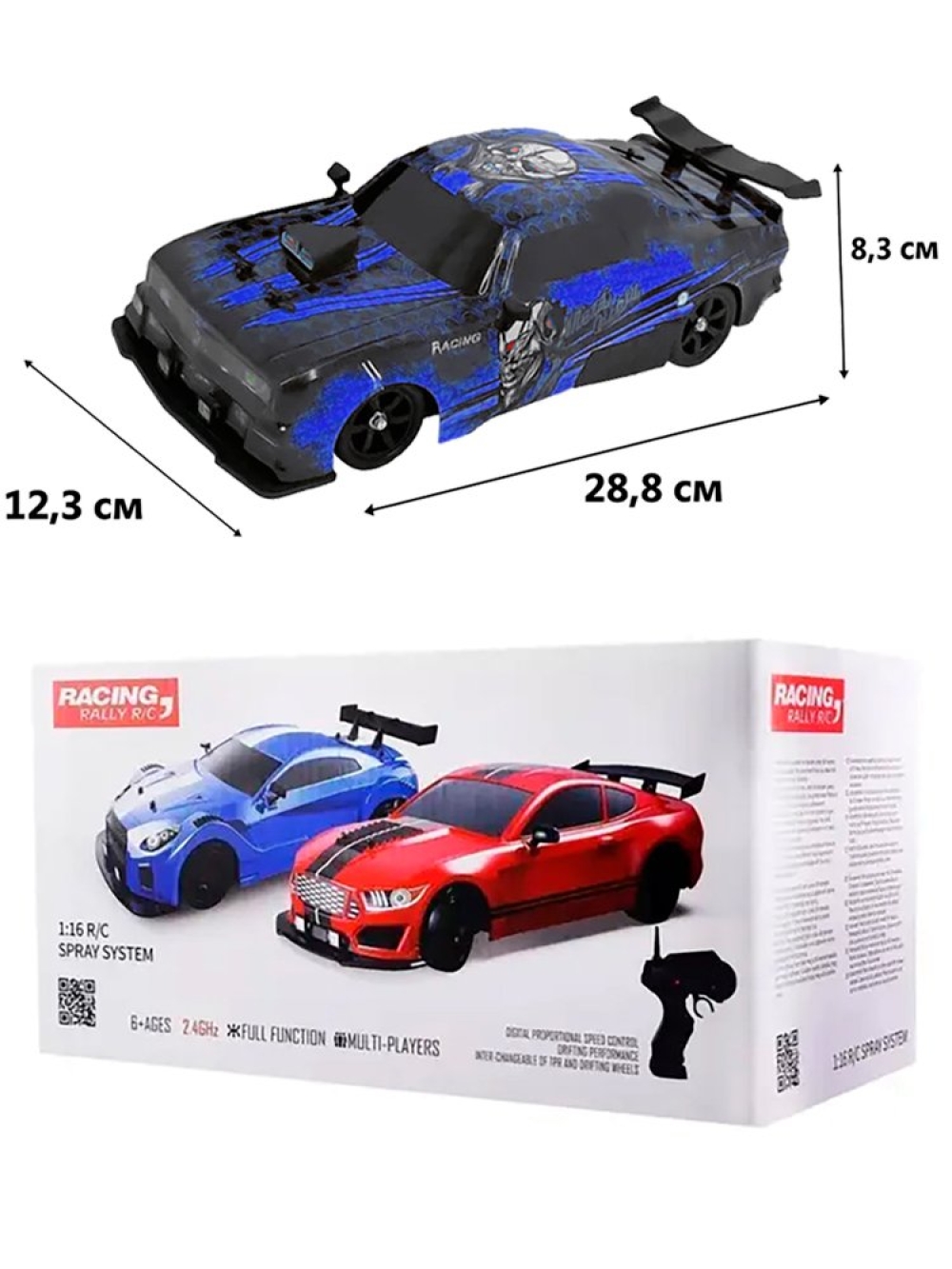 Дрифт - это зрелищное шоу, требующее от владельца машинки умения контролировать автомобиль в заносе и проходить трассу, используя максимально глубокое скольжение. Серия Racing, Rally RC от HB Toys обеспечивает всё для того, чтобы начинающий смог обучиться этому искусству и посоревноваться с друзьями, при этом сделав из заезда эффектное шоу. Во время заезда у машинки светятся фары. Также у нее есть защита от брызг и влаги - в комплекте идет емкость для заправки воды, и из выхлопной трубы авто можно активировать спрей-пар, который также распыляется во время движения.