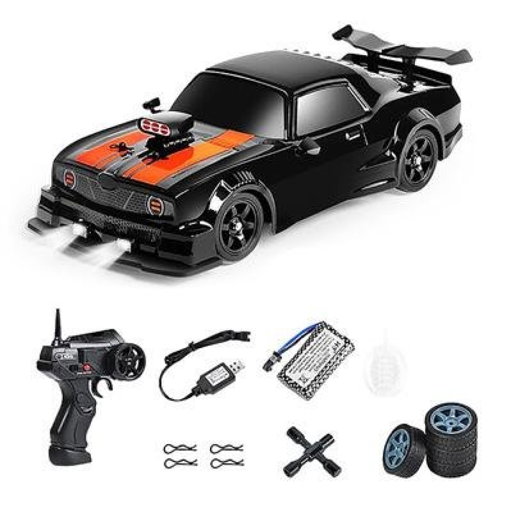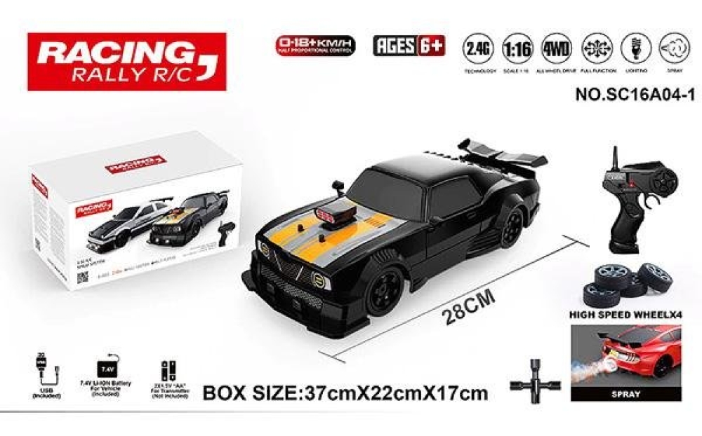 Радиоуправляемая машина HB Ford Mustang (4WD, свет, пар, акб, 1:16) - SC16A04-1 - это машинка для дрифта на радиоуправлении масштаба 1:16, с полным приводом 4WD. Поставляется уже собранной и готовой к заездам прямо из коробки - нужно только полностью зарядить и подсоединить аккумулятор. Спортивный корпус выполнен в чёрном цвете с оранжевыми декалями.