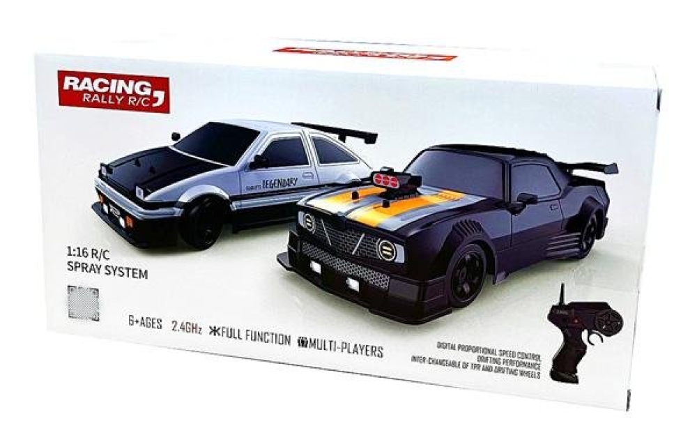 Дрифт - это зрелищное шоу, требующее от владельца машинки умения контролировать автомобиль в заносе и проходить трассу, используя максимально глубокое скольжение. Серия Racing, Rally RC от HB Toys обеспечивает всё для того, чтобы начинающий смог обучиться этому искусству и посоревноваться с друзьями, при этом сделав из заезда эффектное шоу. Во время заезда у машинки светятся фары. Также у нее есть защита от брызг и влаги - в комплекте идет емкость для заправки воды, и из выхлопной трубы авто можно активировать спрей-пар, который также распыляется во время движения.
