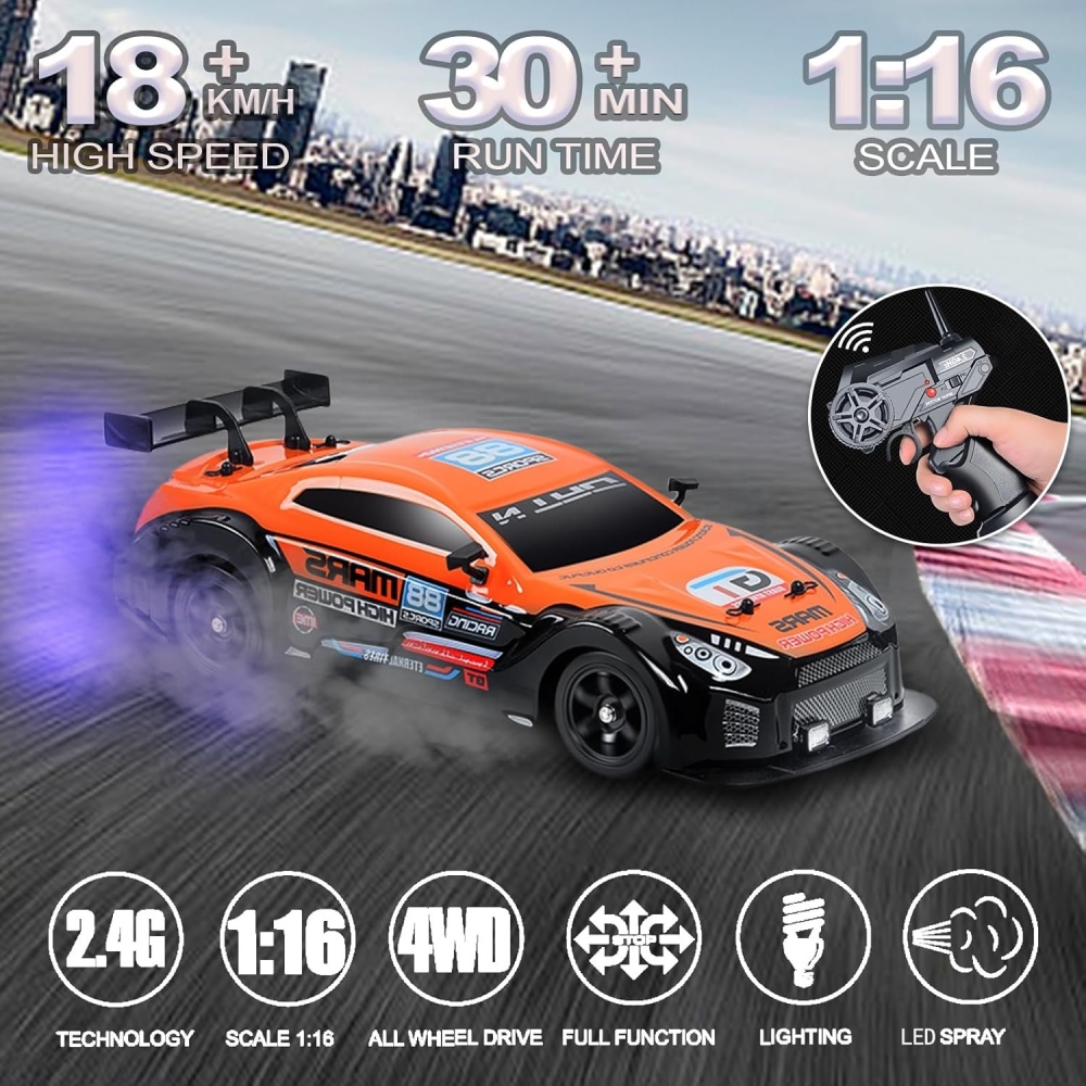 Радиоуправляемая машина HB Nissan GTR (4WD, свет, пар, акб, 1:16) - SC16A06-1 - это машинка для дрифта на радиоуправлении масштаба 1:16, с полным приводом 4WD. Поставляется уже собранной и готовой к заездам прямо из коробки - нужно только полностью зарядить и подсоединить аккумулятор. Спортивный корпус выполнен в оранжевом и чёрном цветах. Есть цветные декали.