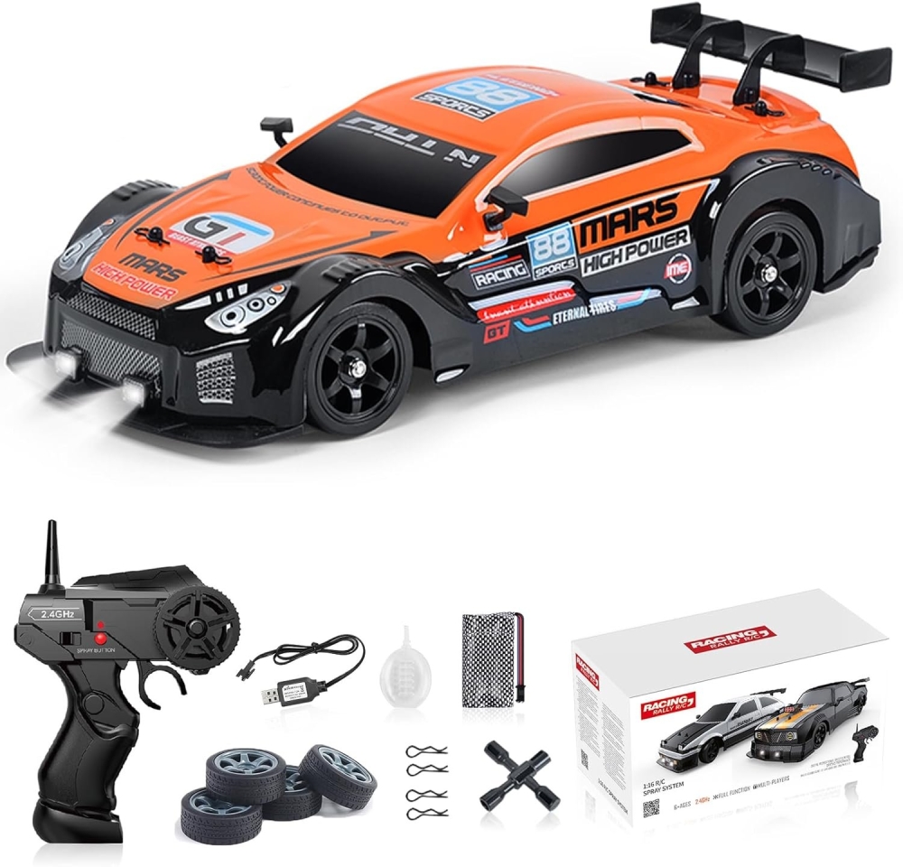 Дрифт - это зрелищное шоу, требующее от владельца машинки умения контролировать автомобиль в заносе и проходить трассу, используя максимально глубокое скольжение. Серия Racing, Rally RC от HB Toys обеспечивает всё для того, чтобы начинающий смог обучиться этому искусству и посоревноваться с друзьями, при этом сделав из заезда эффектное шоу. Во время заезда у машинки светятся фары. Также у нее есть защита от брызг и влаги - в комплекте идет емкость для заправки воды, и из выхлопной трубы авто можно активировать спрей-пар, который также распыляется во время движения.