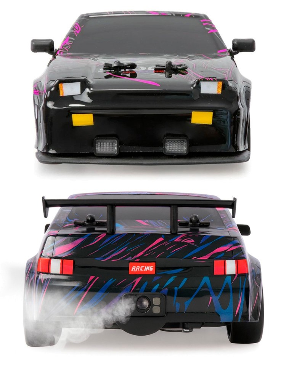 Дрифт - это зрелищное шоу, требующее от владельца машинки умения контролировать автомобиль в заносе и проходить трассу, используя максимально глубокое скольжение. Серия Racing, Rally RC от HB Toys обеспечивает всё для того, чтобы начинающий смог обучиться этому искусству и посоревноваться с друзьями, при этом сделав из заезда эффектное шоу. Во время заезда у машинки светятся фары. Также у нее есть защита от брызг и влаги - в комплекте идет емкость для заправки воды, и из выхлопной трубы авто можно активировать спрей-пар, который также распыляется во время движения.