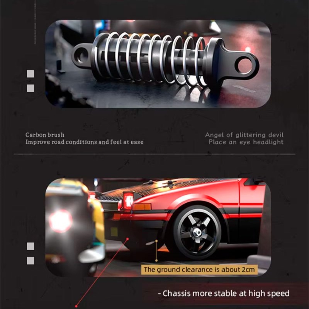 Машина успешно проходит экстремально крутые повороты на высокой скорости. Материал корпуса достаточно прочен, чтобы выдержать не одно столкновение на трассе. Автомобиль удивит вас своей маневренностью и лёгкостью в управлении!