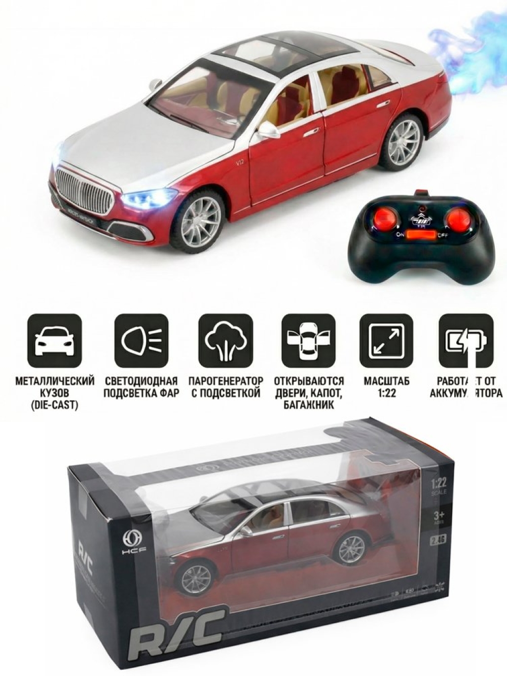 Радиоуправляемая машина HB Mercedes S600 1:22 металл - HCL-3813-RED