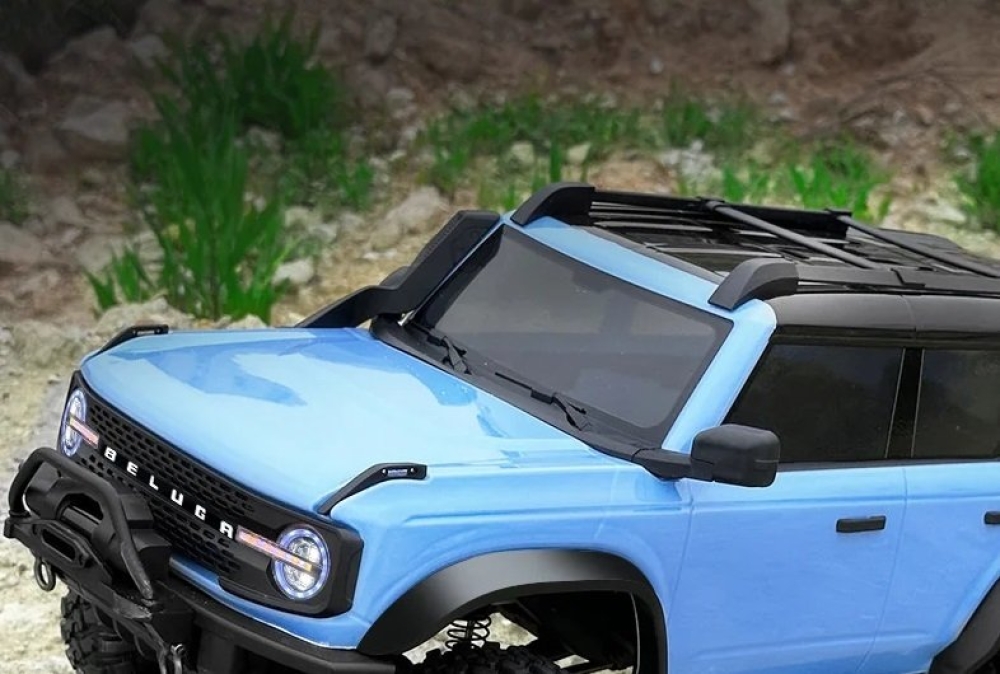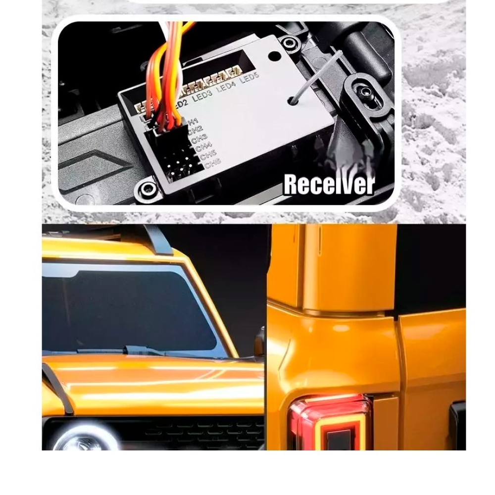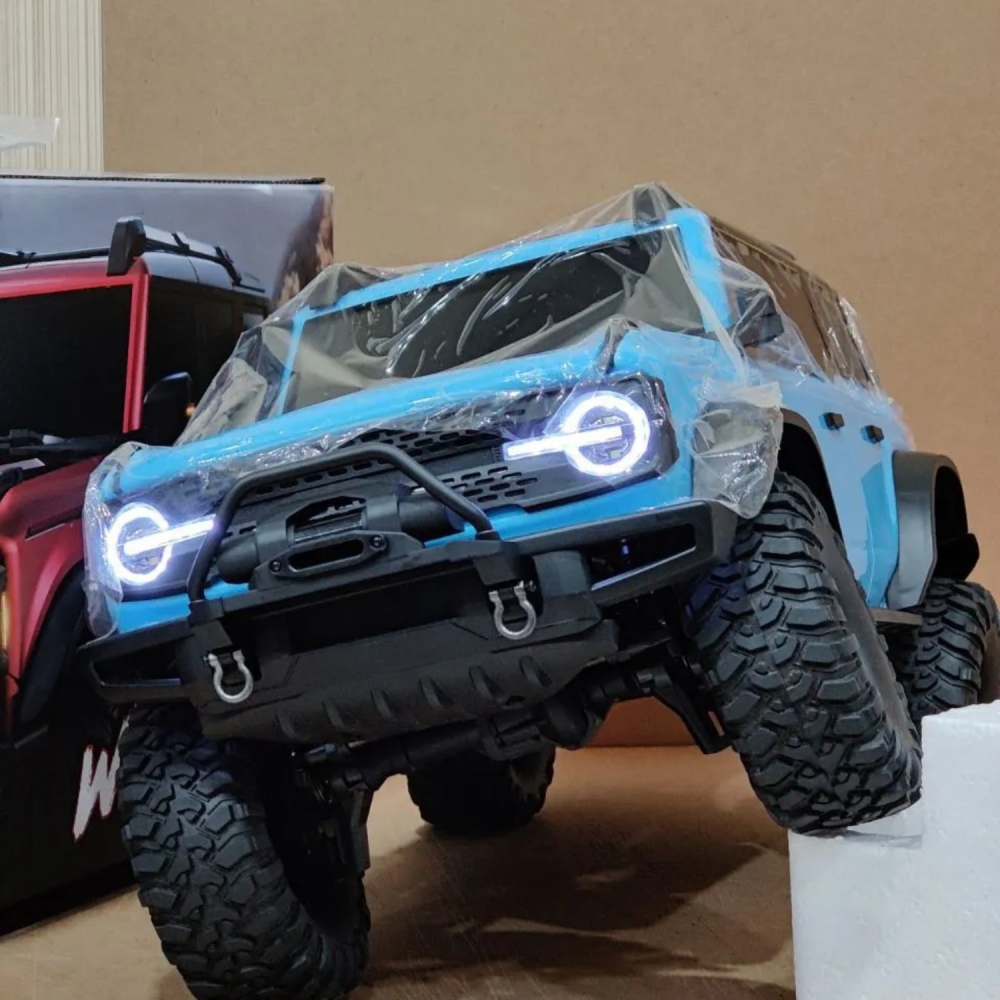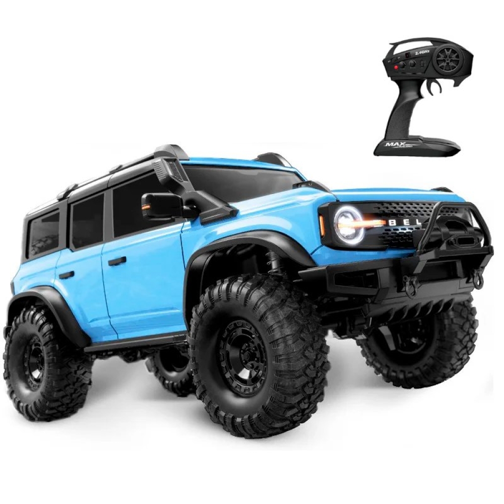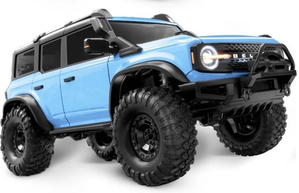 Большой реалистичный внедорожник Bronco. Имеет полный привод и мягкие резиновые колеса. Модель имеет оригинальный раскрашенный кузов, на крыше которого расположен дополнительный багажник. Джип предназначен для сурового бездорожья - ямы, гравий и камни не помеха. Набор скорости и поворот колес пропорциональны управлению с пульта. Имеет мощный электромотор, что делает его более управляемым и маневренным. Подвеска имеет пружинные амортизаторы.