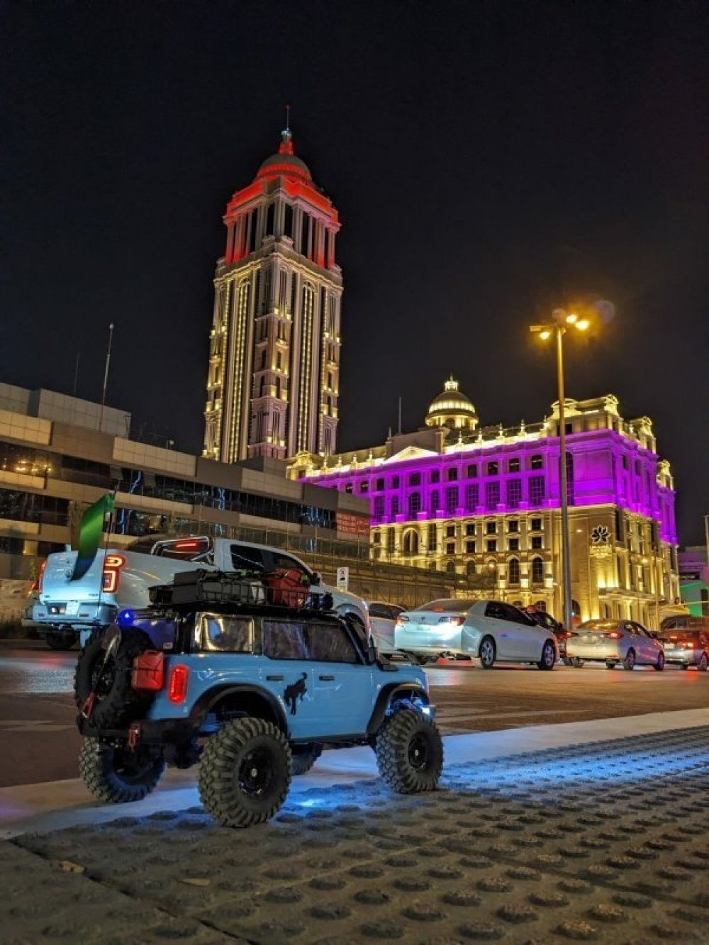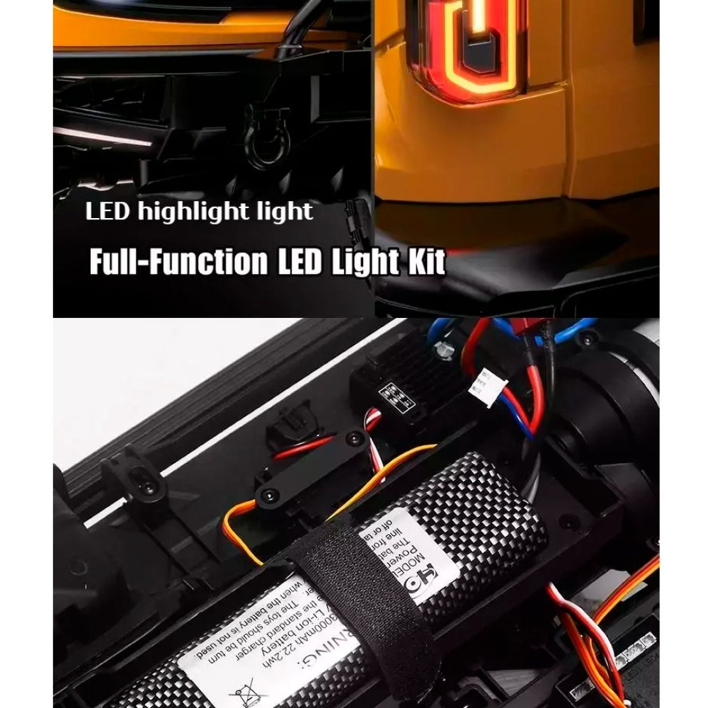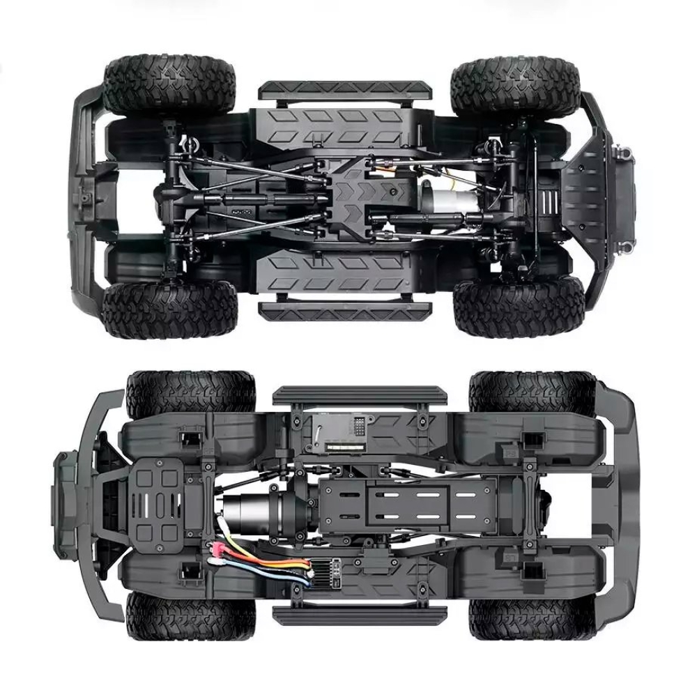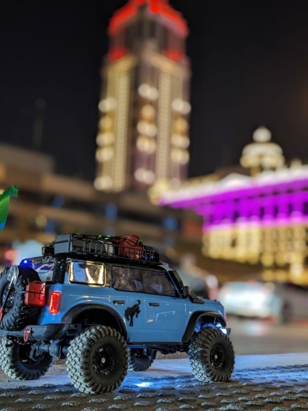 Большой реалистичный внедорожник Bronco. Имеет полный привод и мягкие резиновые колеса. Модель имеет оригинальный раскрашенный кузов, на крыше которого расположен дополнительный багажник. Джип предназначен для сурового бездорожья - ямы, гравий и камни не помеха. Набор скорости и поворот колес пропорциональны управлению с пульта. Имеет мощный электромотор, что делает его более управляемым и маневренным. Подвеска имеет пружинные амортизаторы.