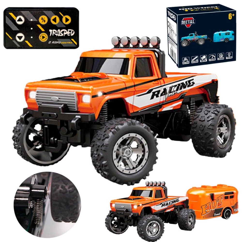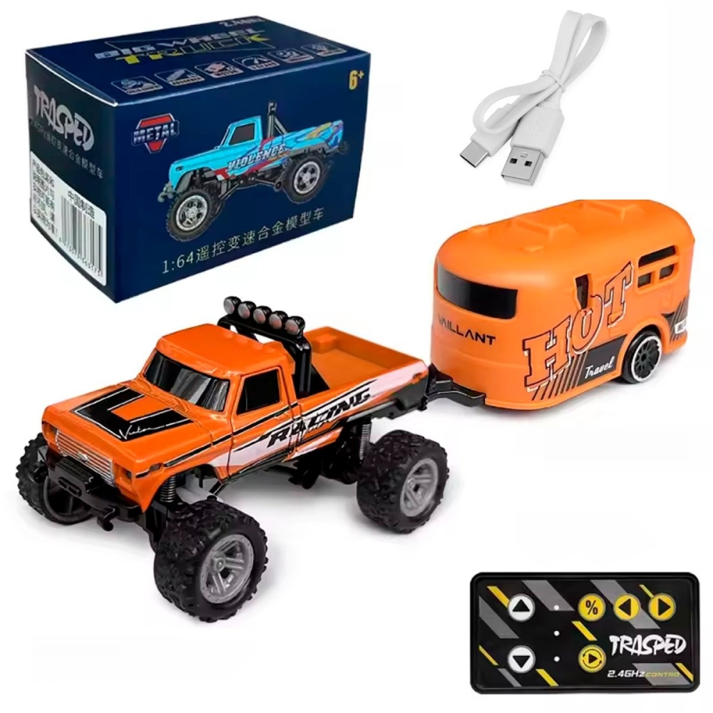 Радиоуправляемый металлический минитрак с прицепом 1:64 - HG4-80-ORANGE