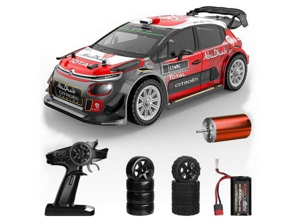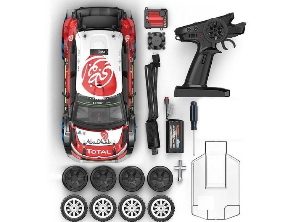 Полностью собранная модель, с окрашенным кузовом и установленной влагозащищенной электроникой 2.4G, аккумулятор - 2000 mAh Li-Ion 7.4V, зарядное устройство для аккумулятора, работающее от сети 220v., пульт управления, 3 комплекта колес, ключ и отвертка, держатель для смартфона, инструкция